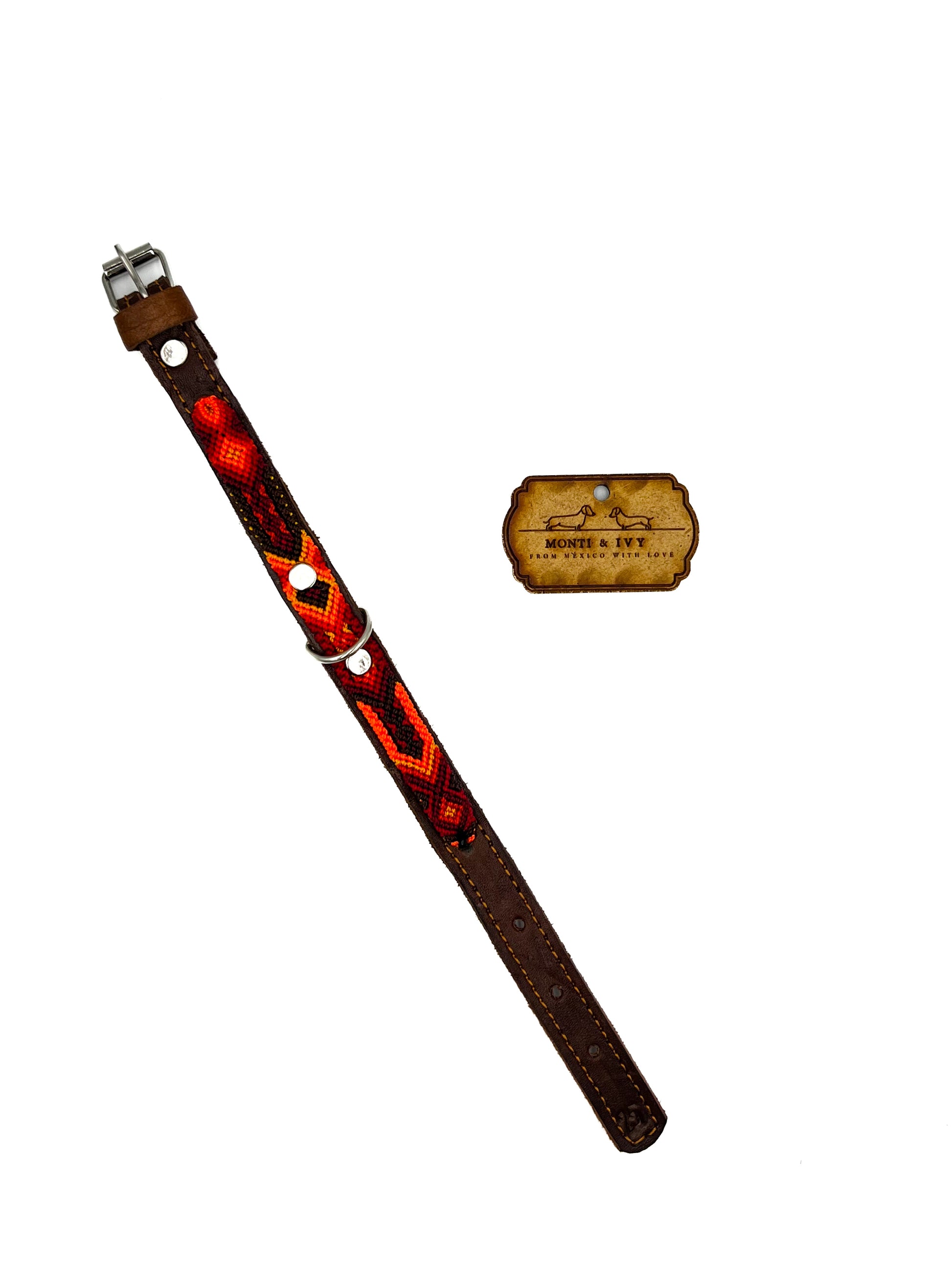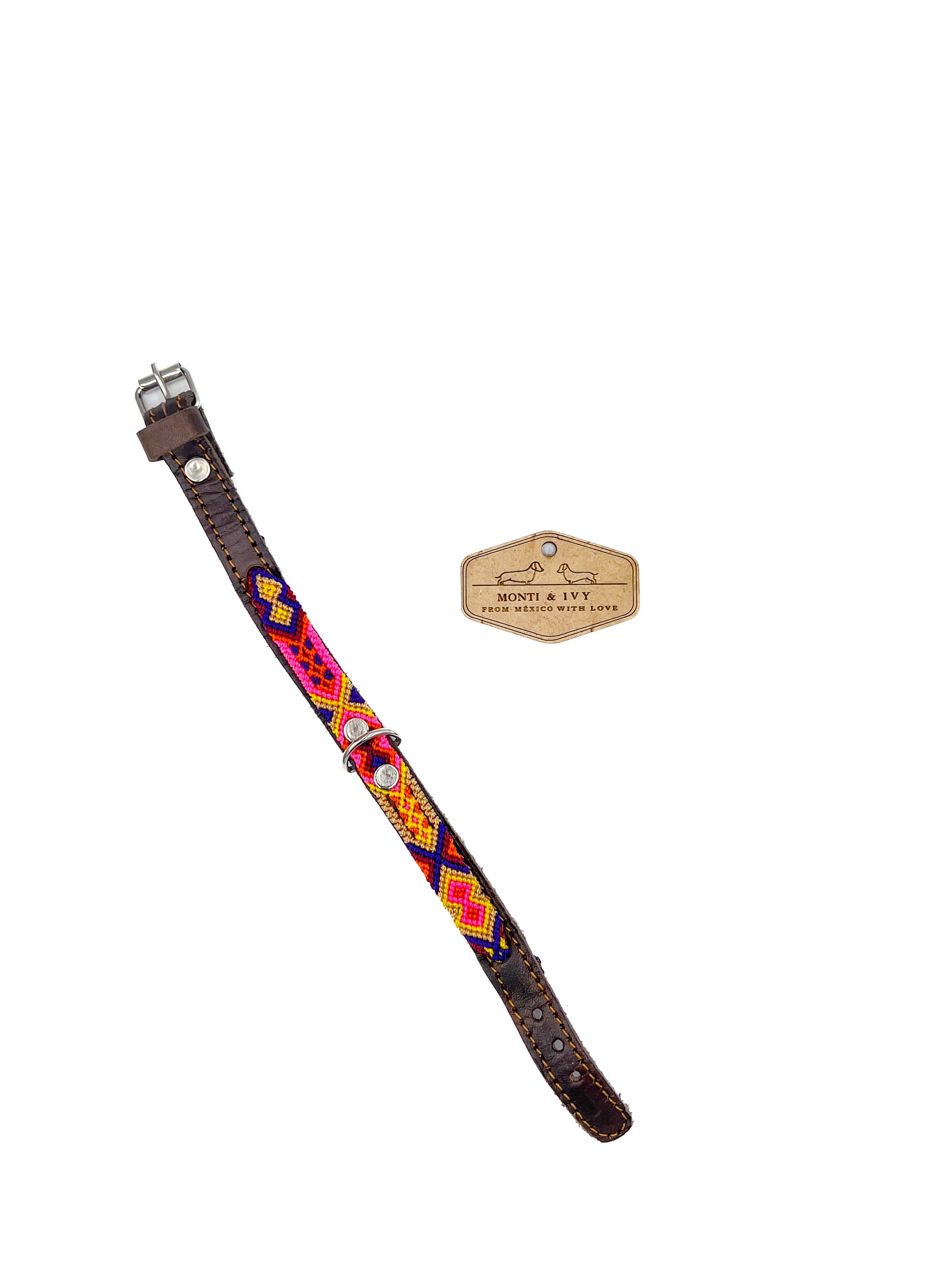Halsband auf Lederbasis mit handgefertigtem buntem Webmuster