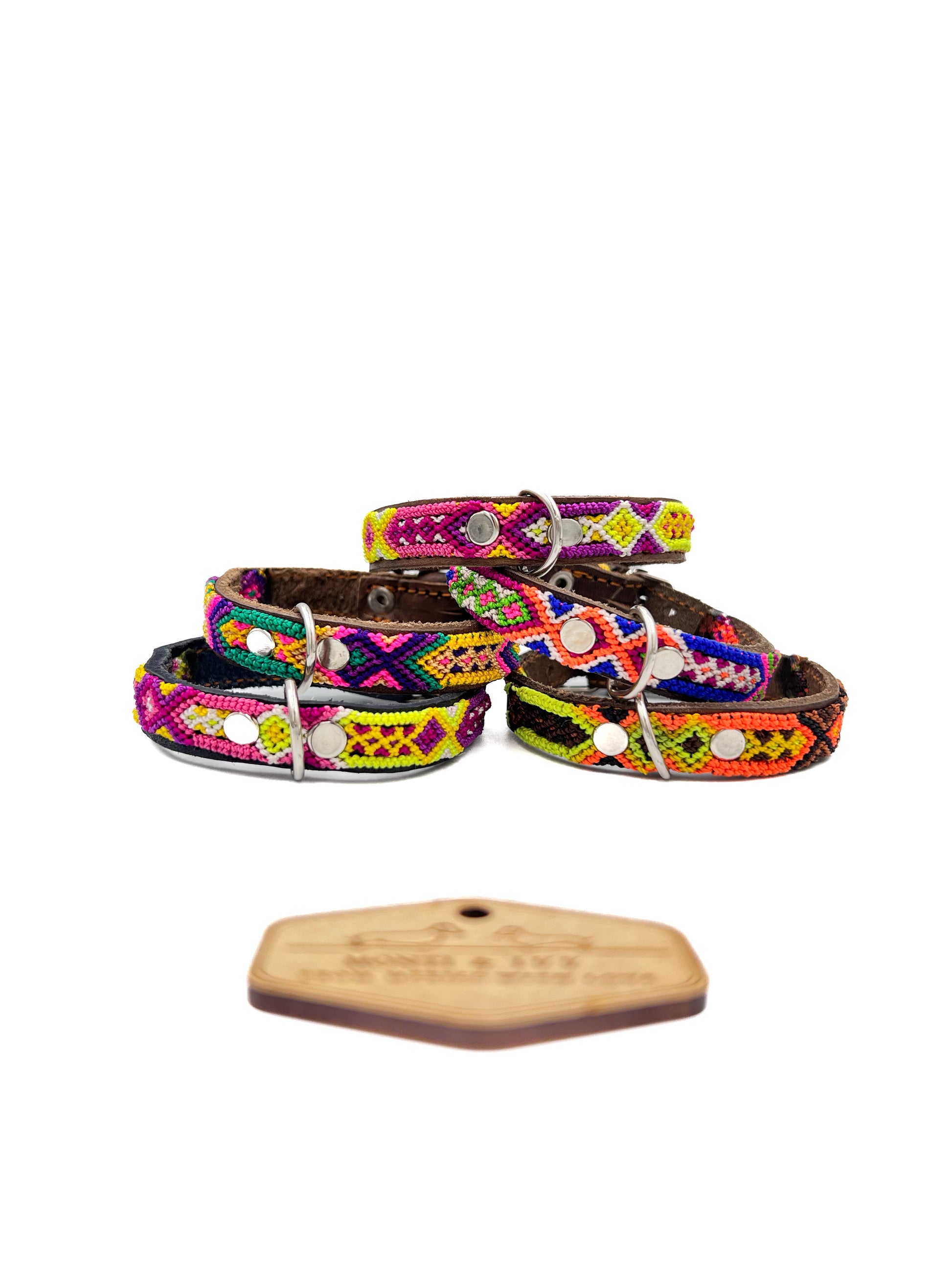 Du magst es etwas eleganter? Dann ist dieses Halsband etwas für dich! Unser OASIS-Halsband besteht hauptsächlich aus mexikanischem Leder. Darin verwoben findest du ein wunderschönes handgefertigtes Detail mit einzigartigen Farbkombinationen.