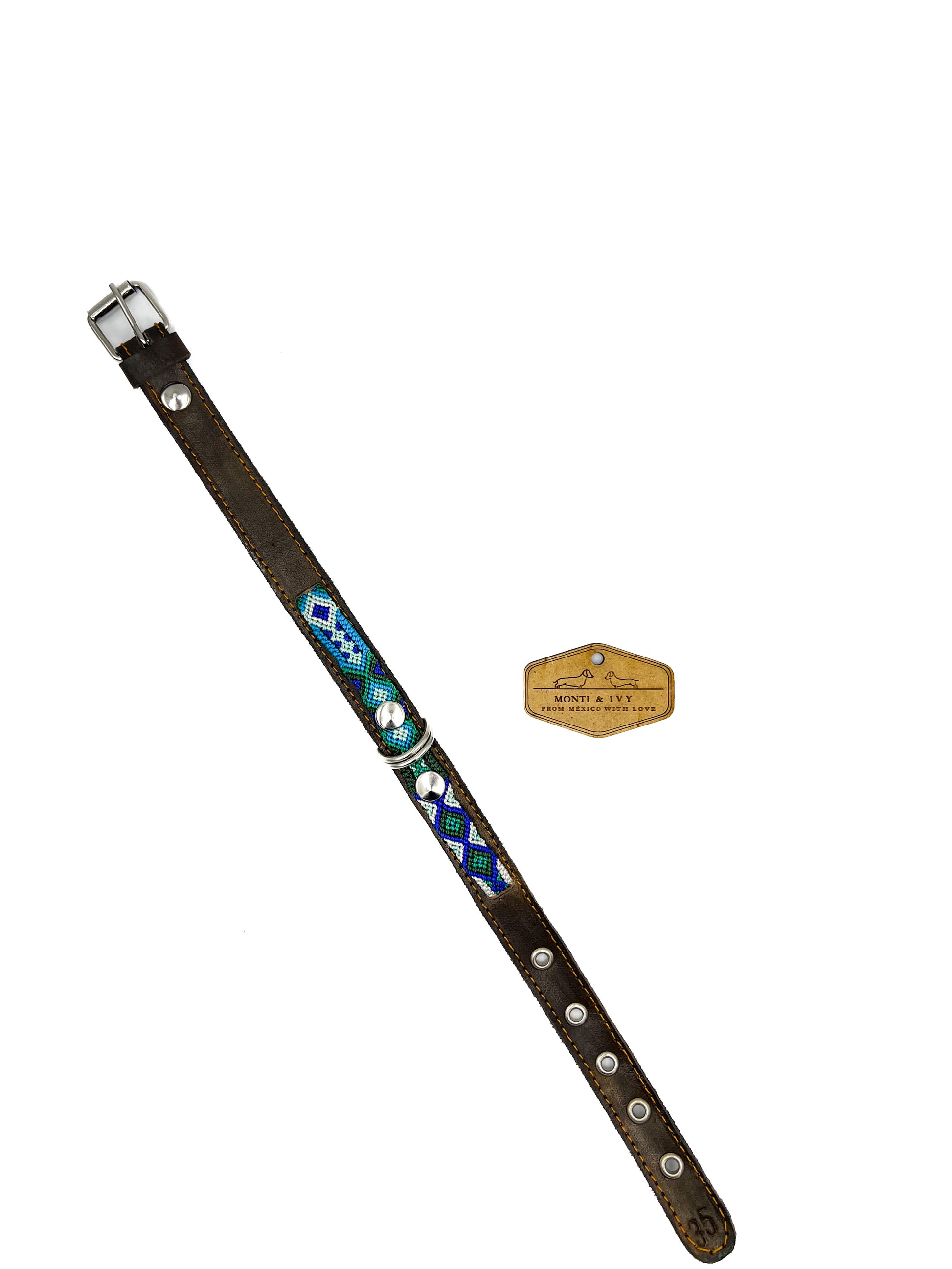 Du magst es etwas eleganter? Dann ist dieses Halsband etwas für dich! Unser OASIS-Halsband besteht hauptsächlich aus mexikanischem Leder. Darin verwoben findest du ein wunderschönes handgefertigtes Detail mit einzigartigen Farbkombinationen.
