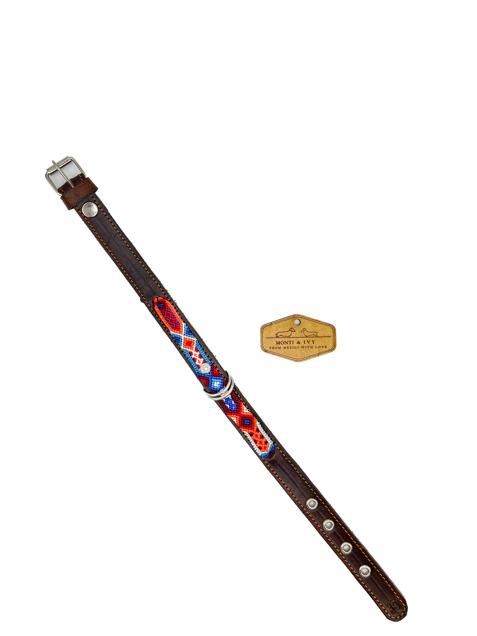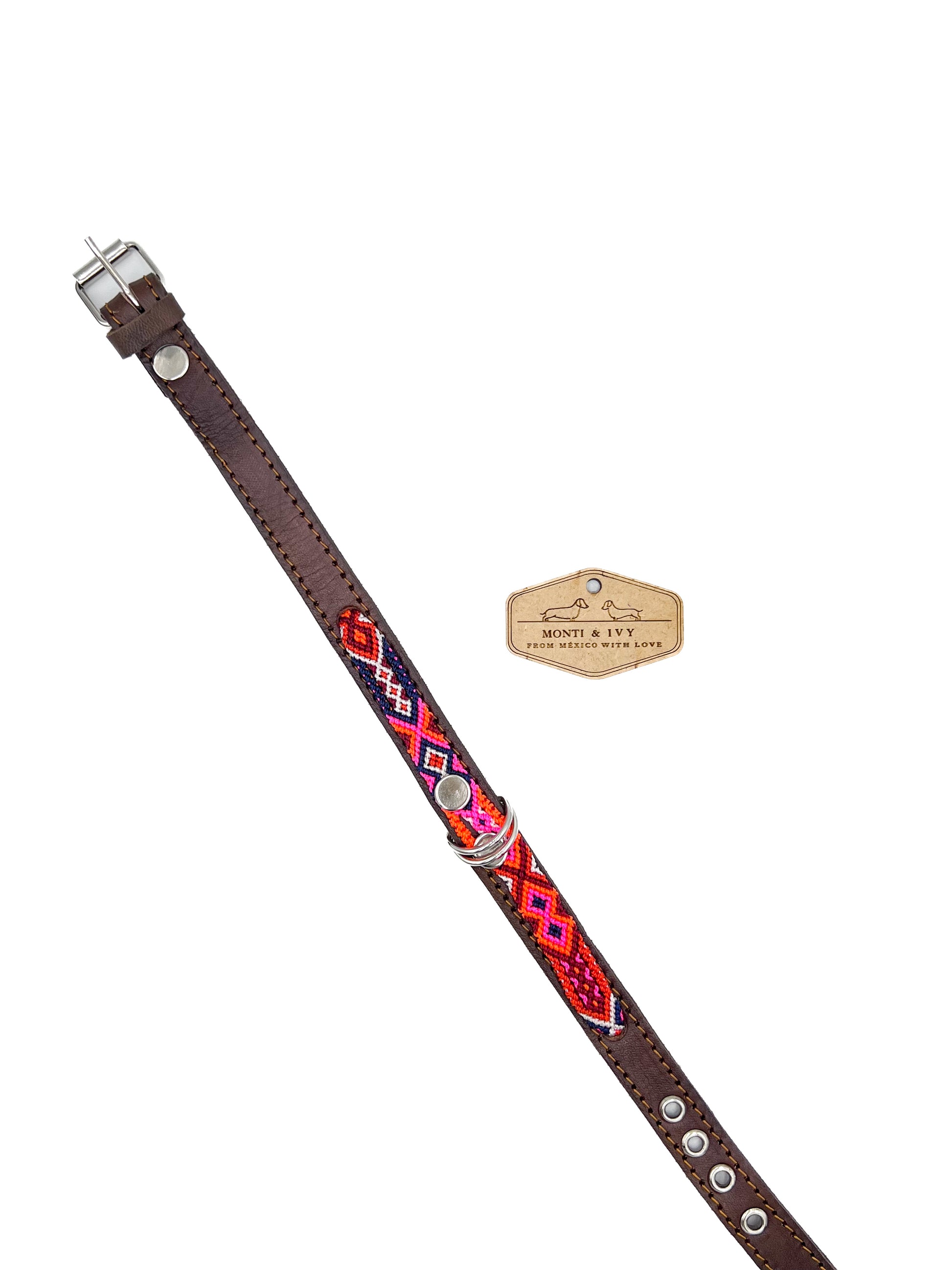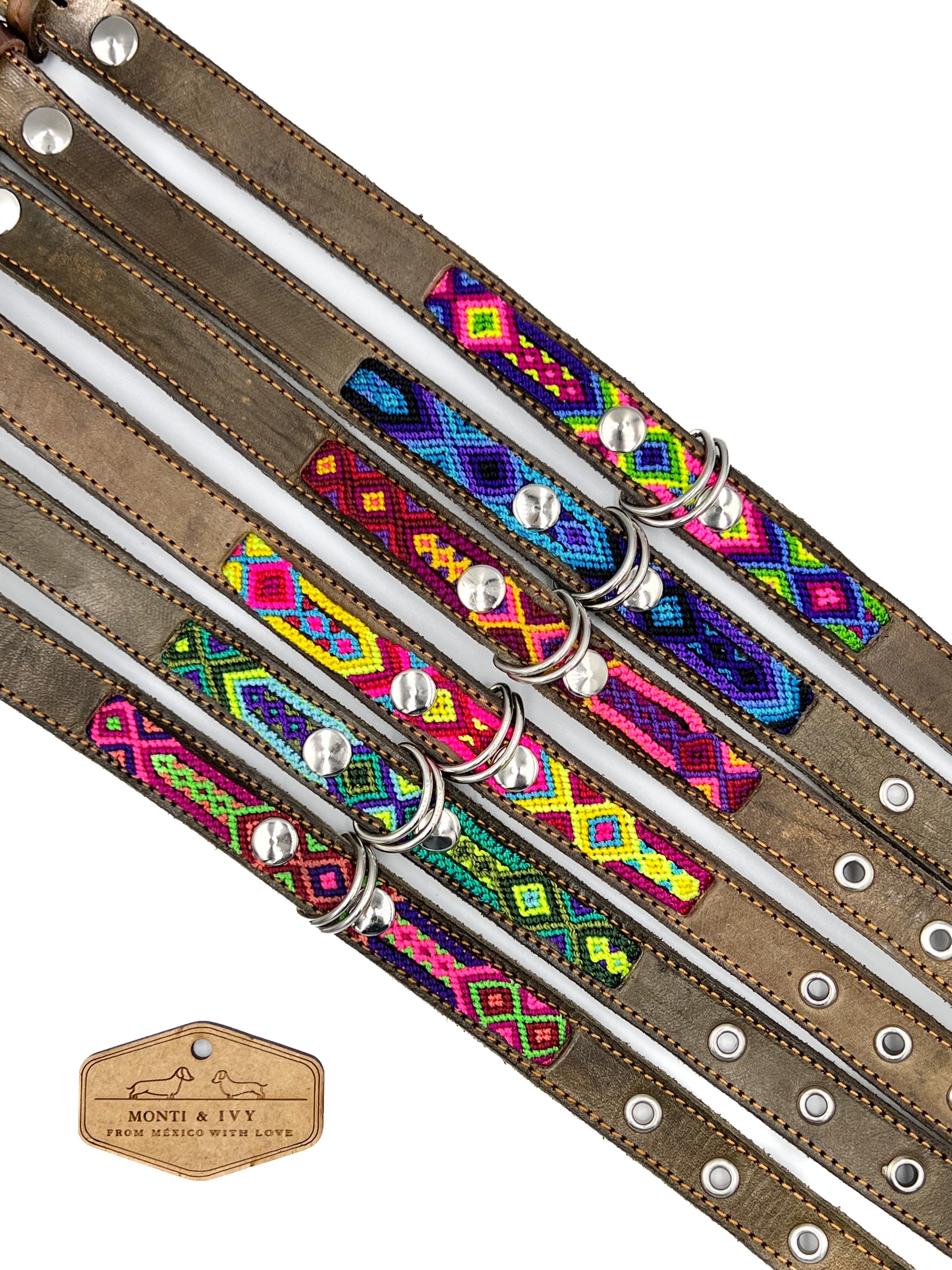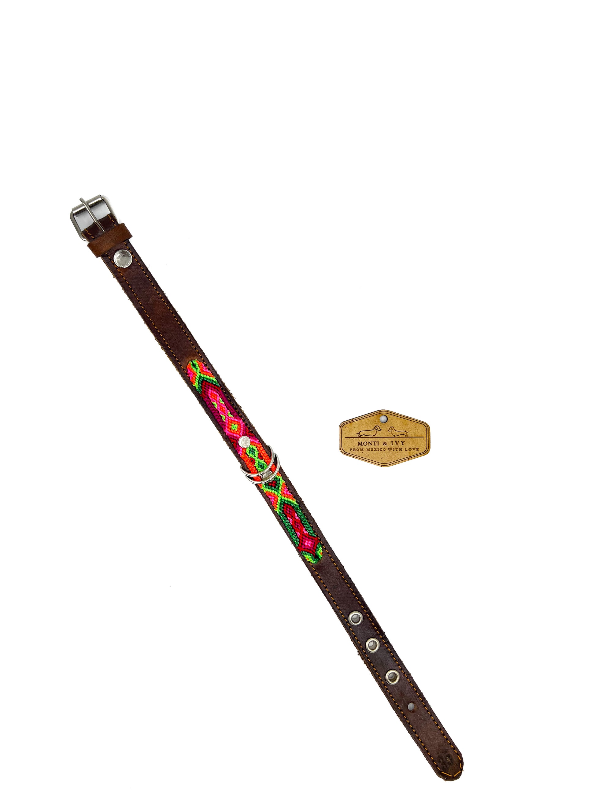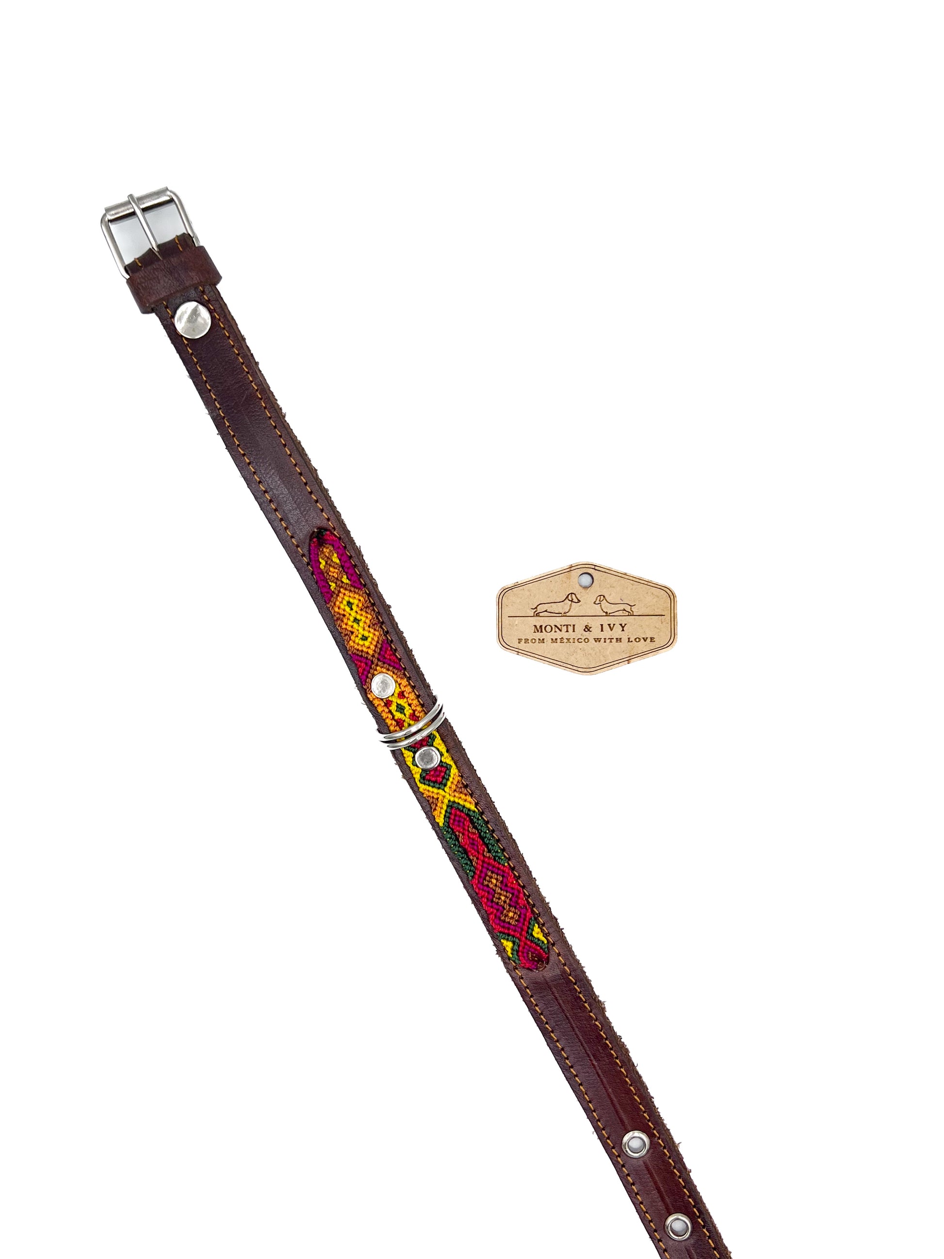 Halsband auf Lederbasis mit handgefertigtem buntem Webmuster