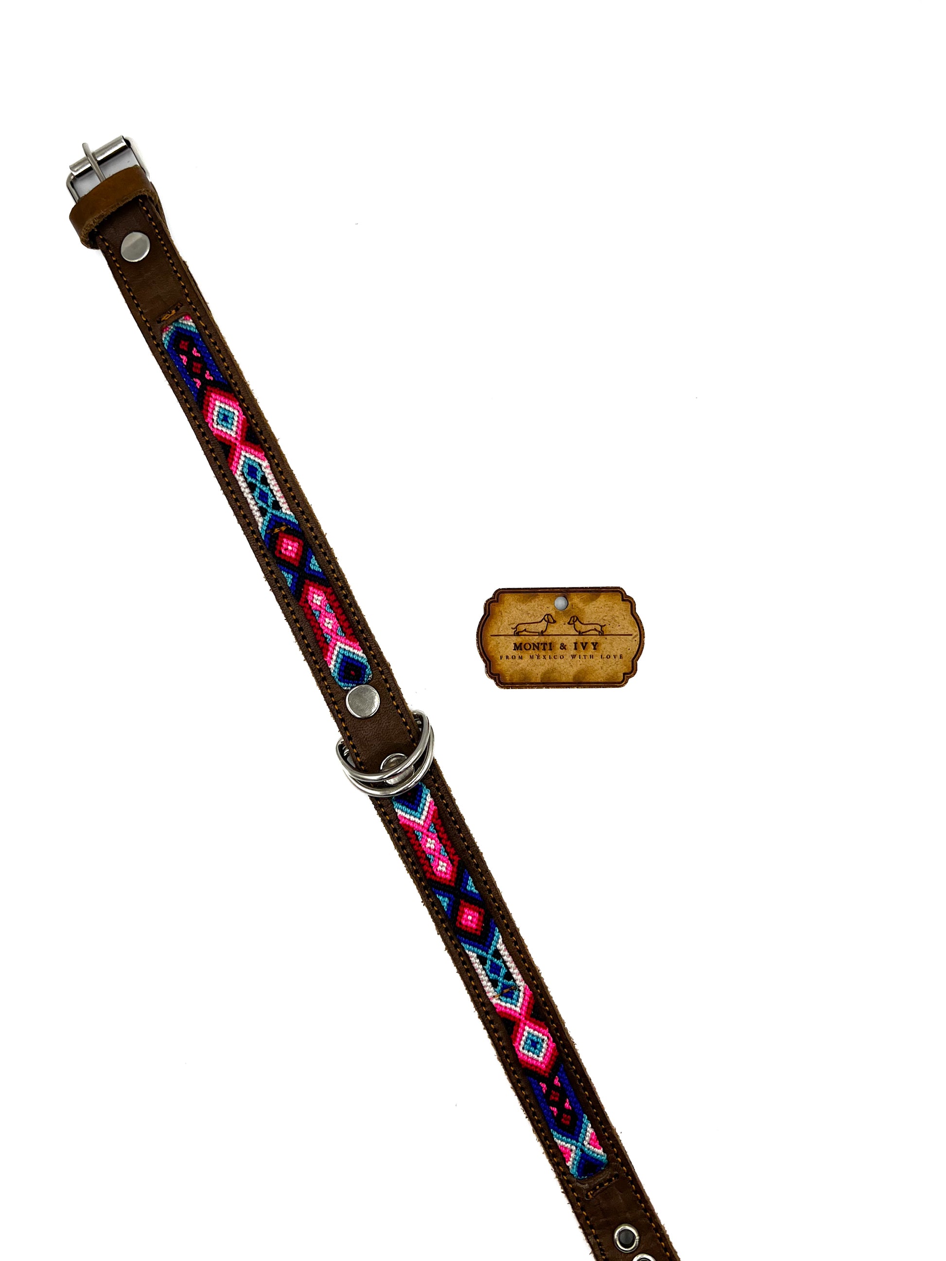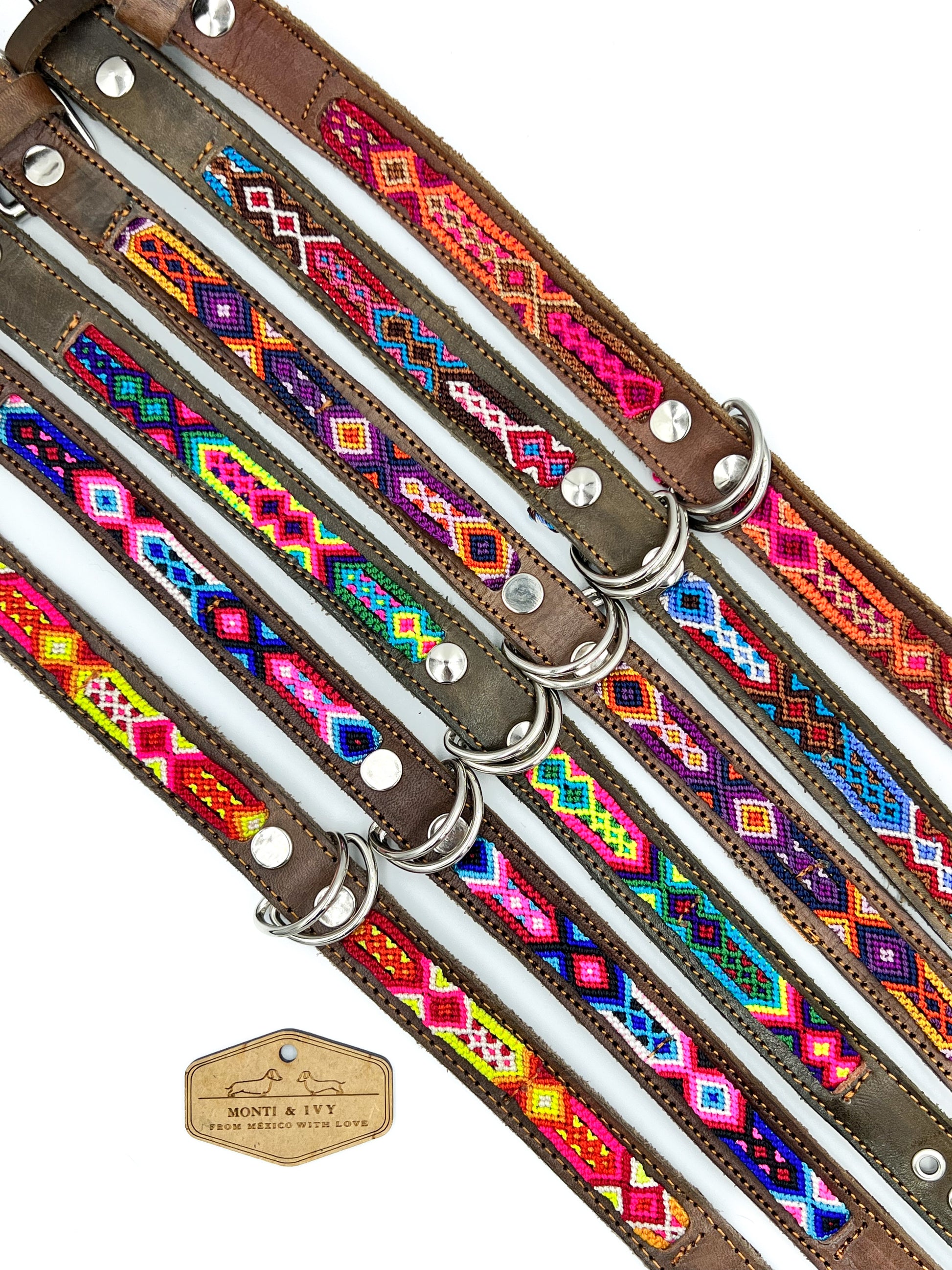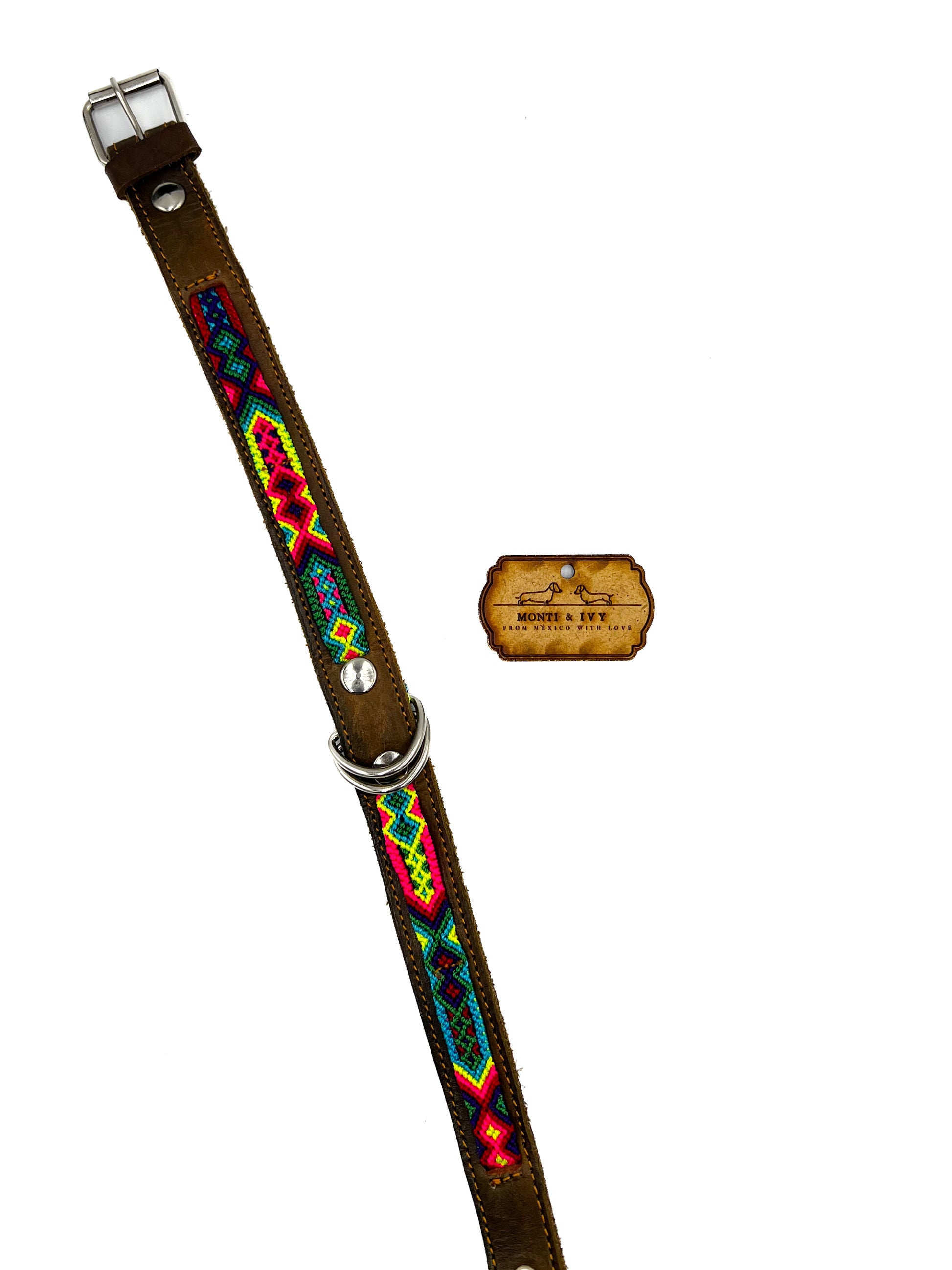 Halsband auf Lederbasis mit handgefertigtem buntem Webmuster