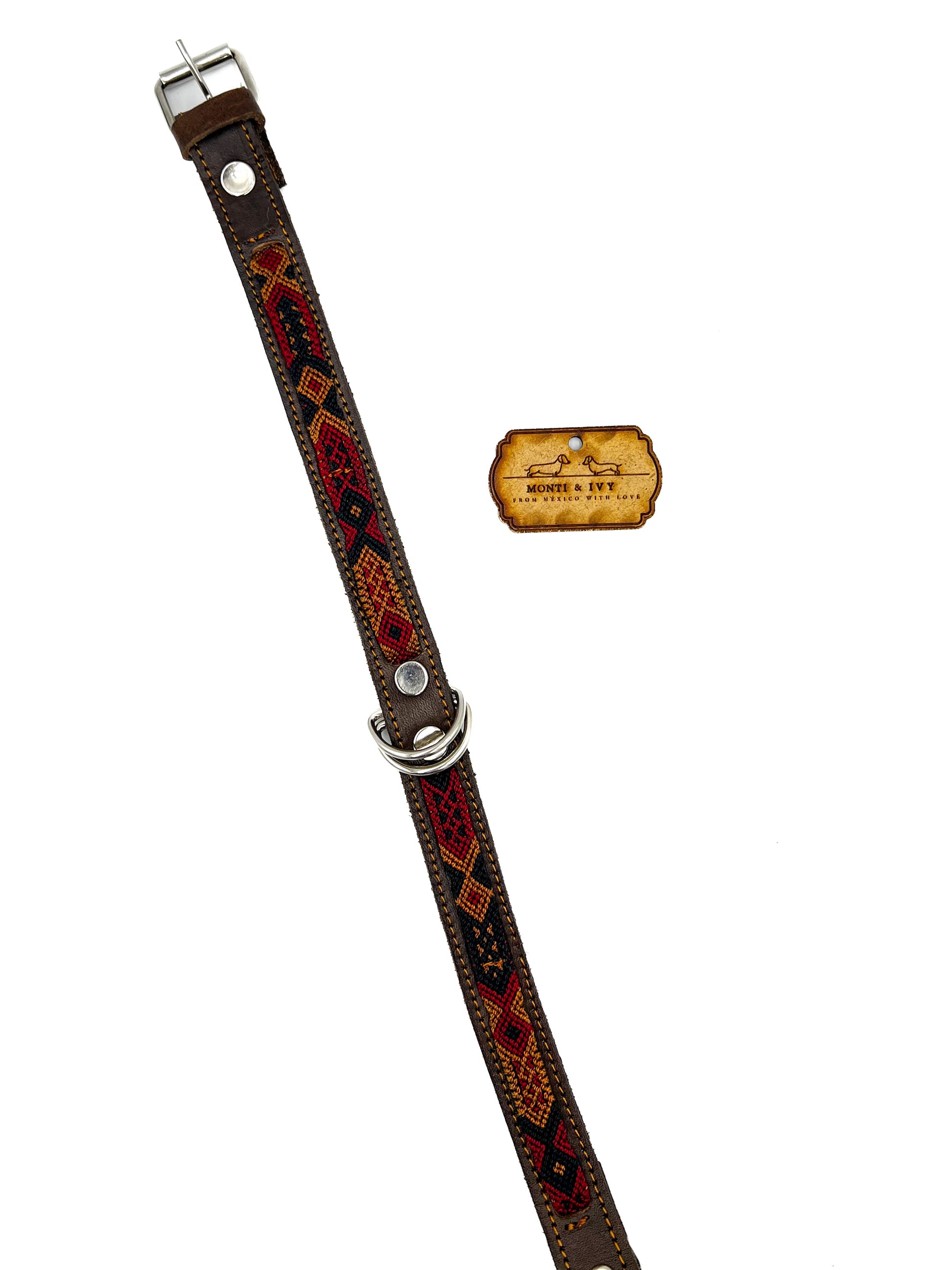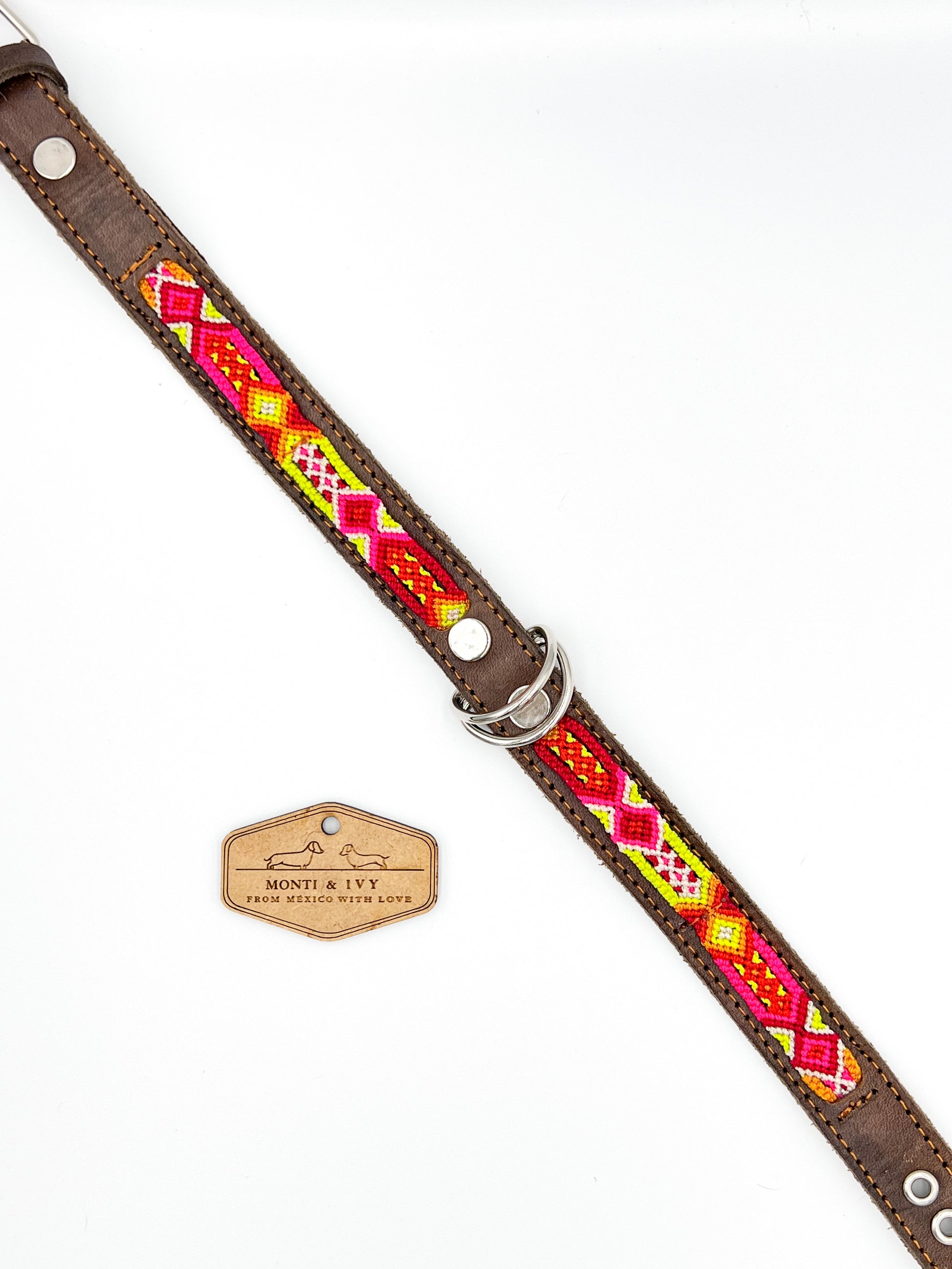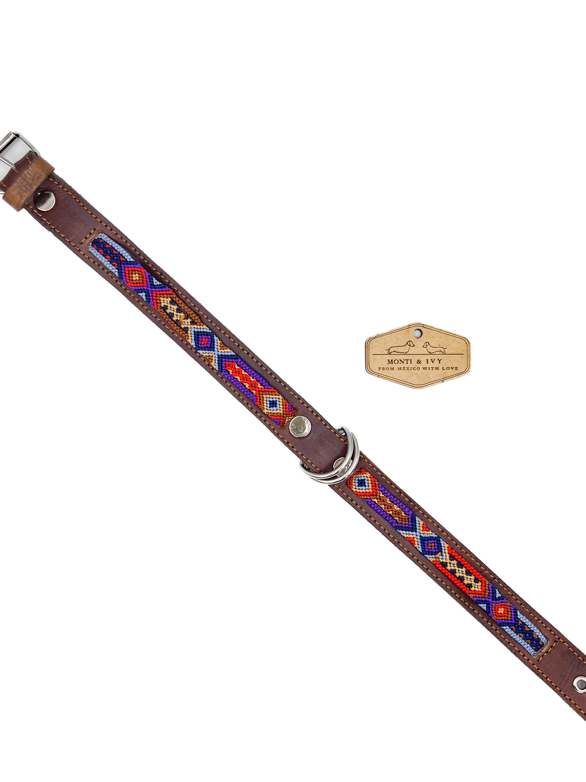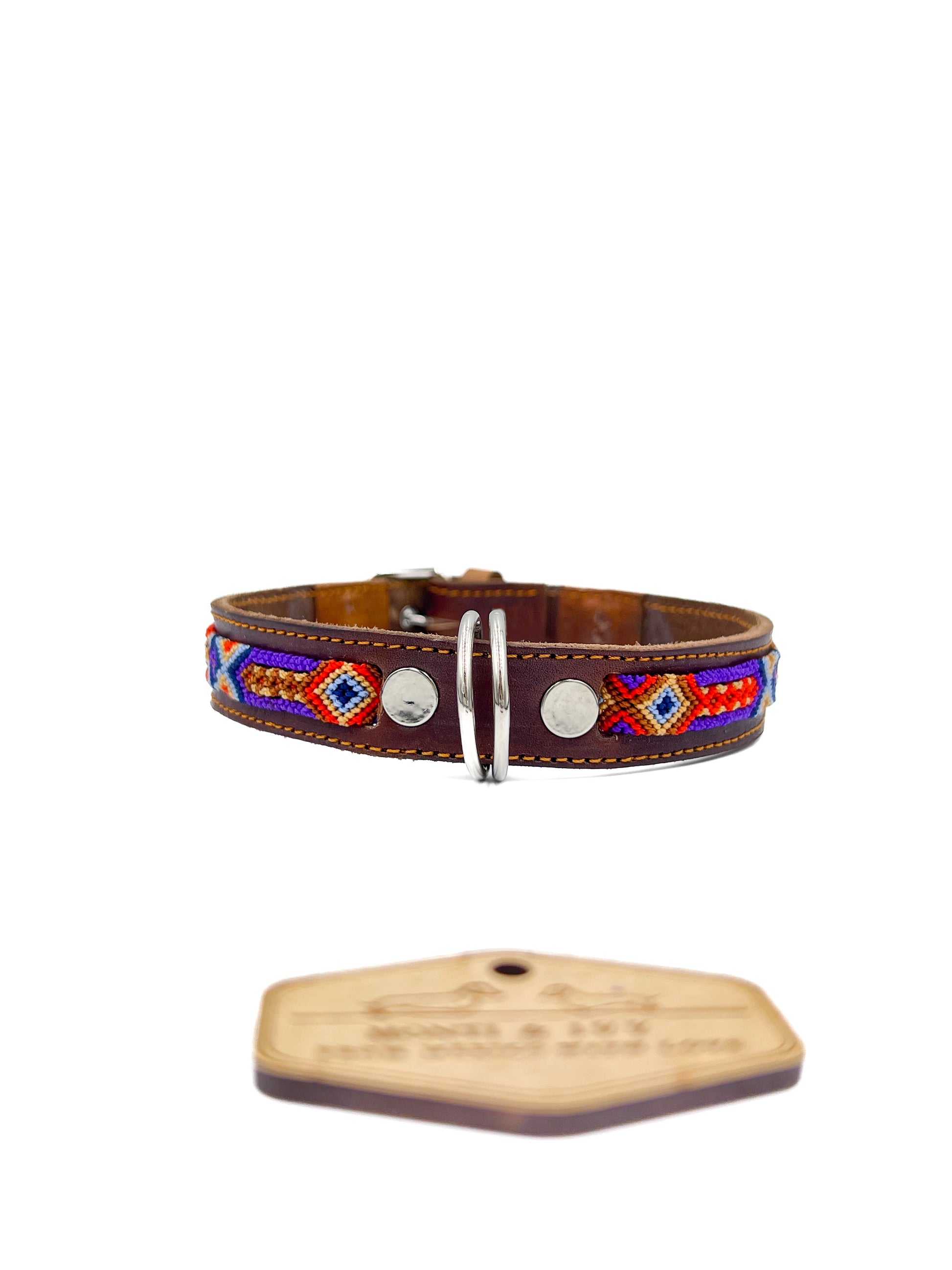 Halsband auf Lederbasis mit handgefertigtem buntem Webmuster
