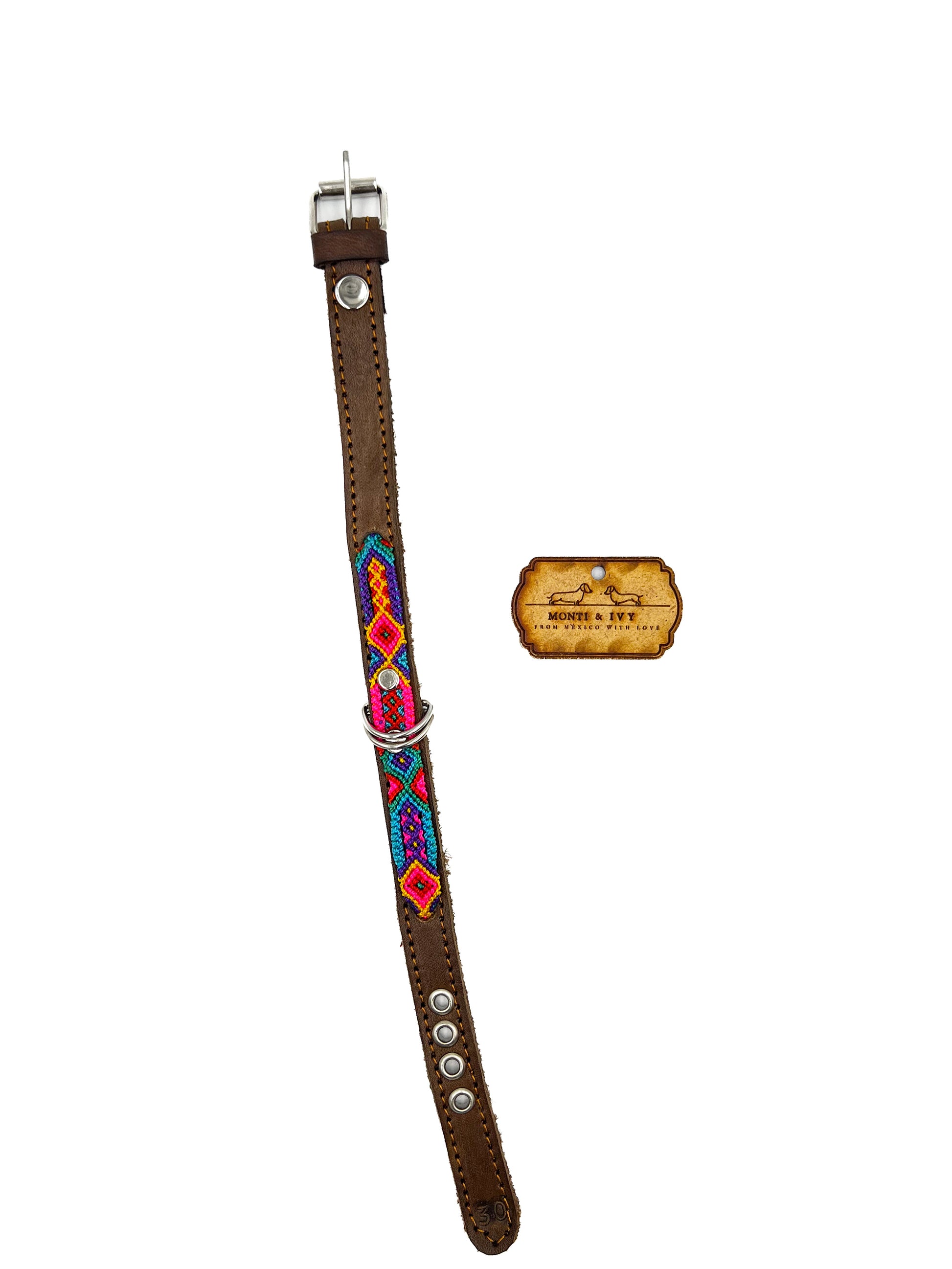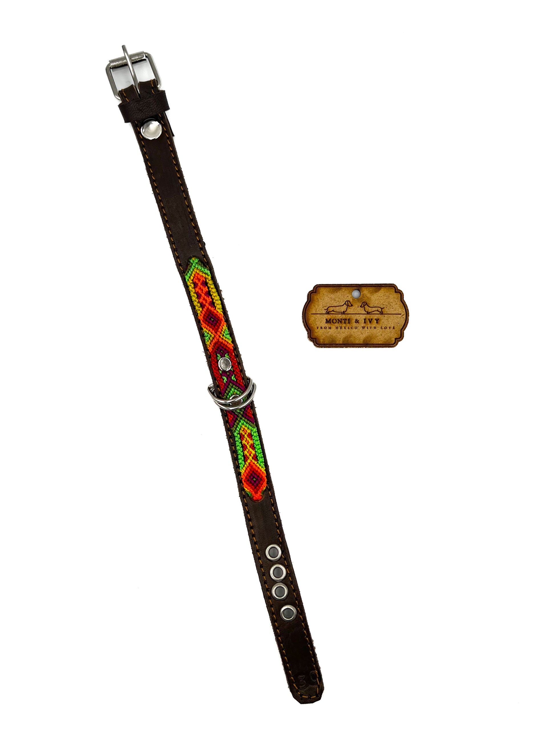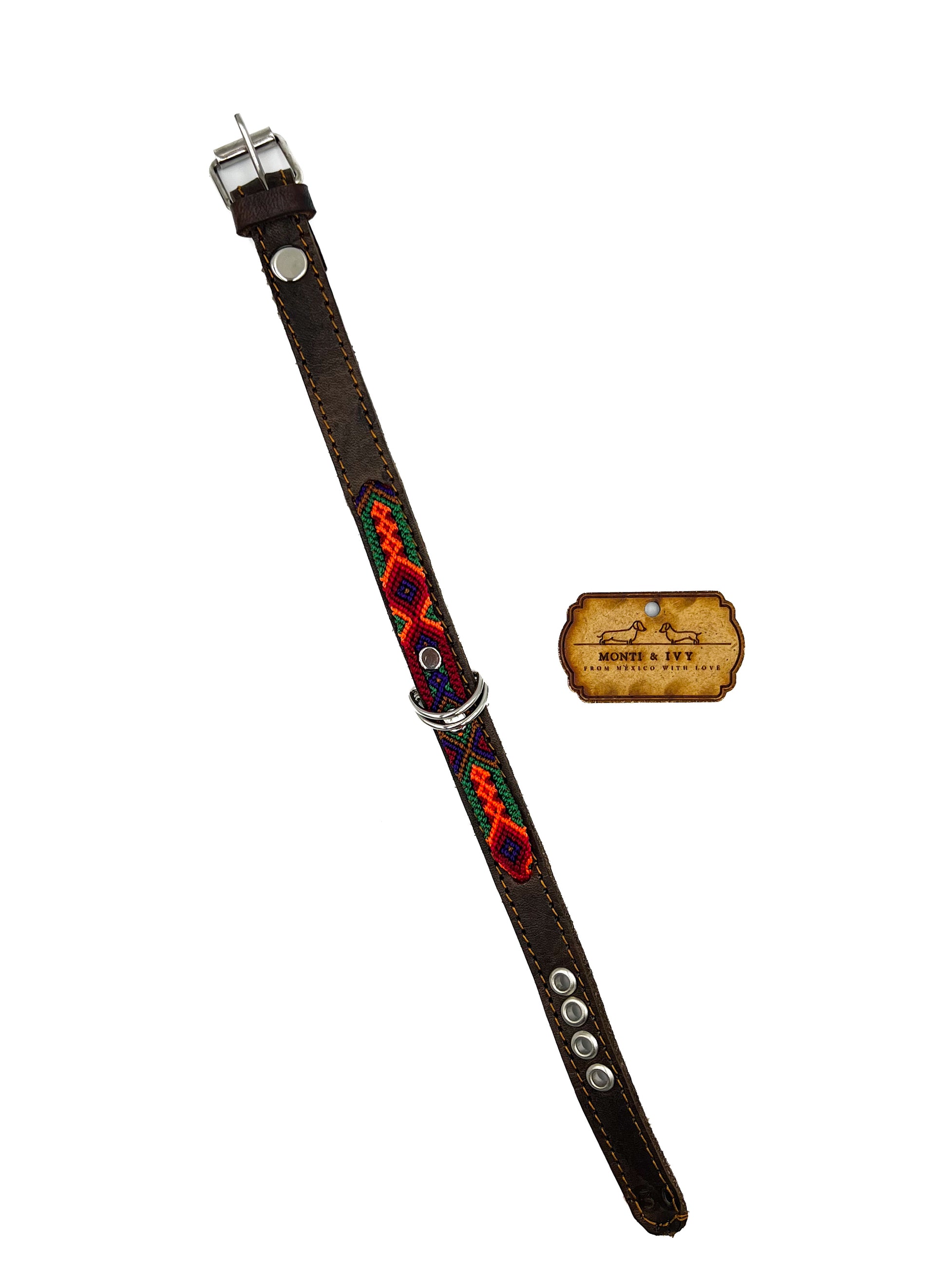 Halsband auf Lederbasis mit handgefertigtem buntem Webmuster