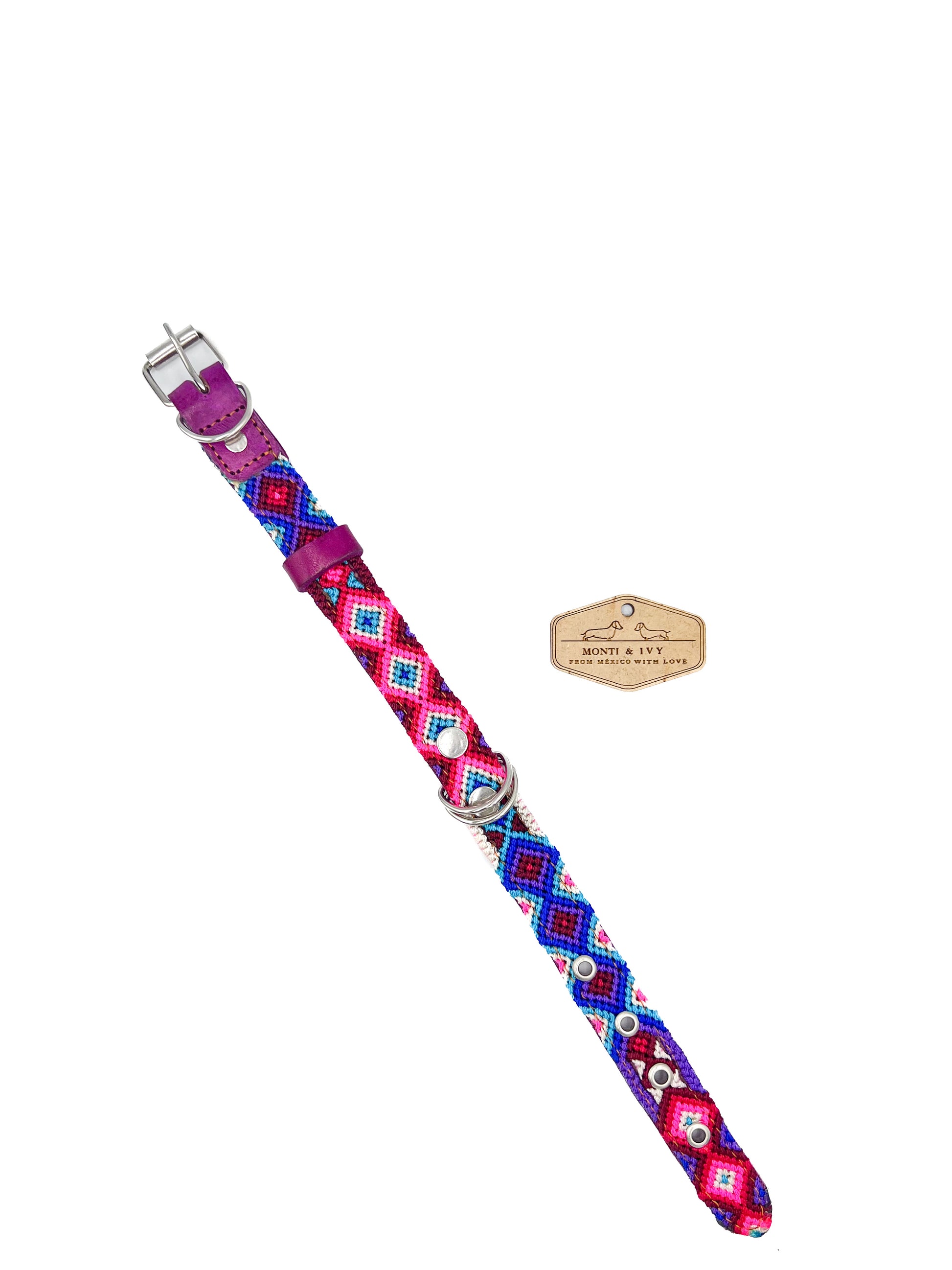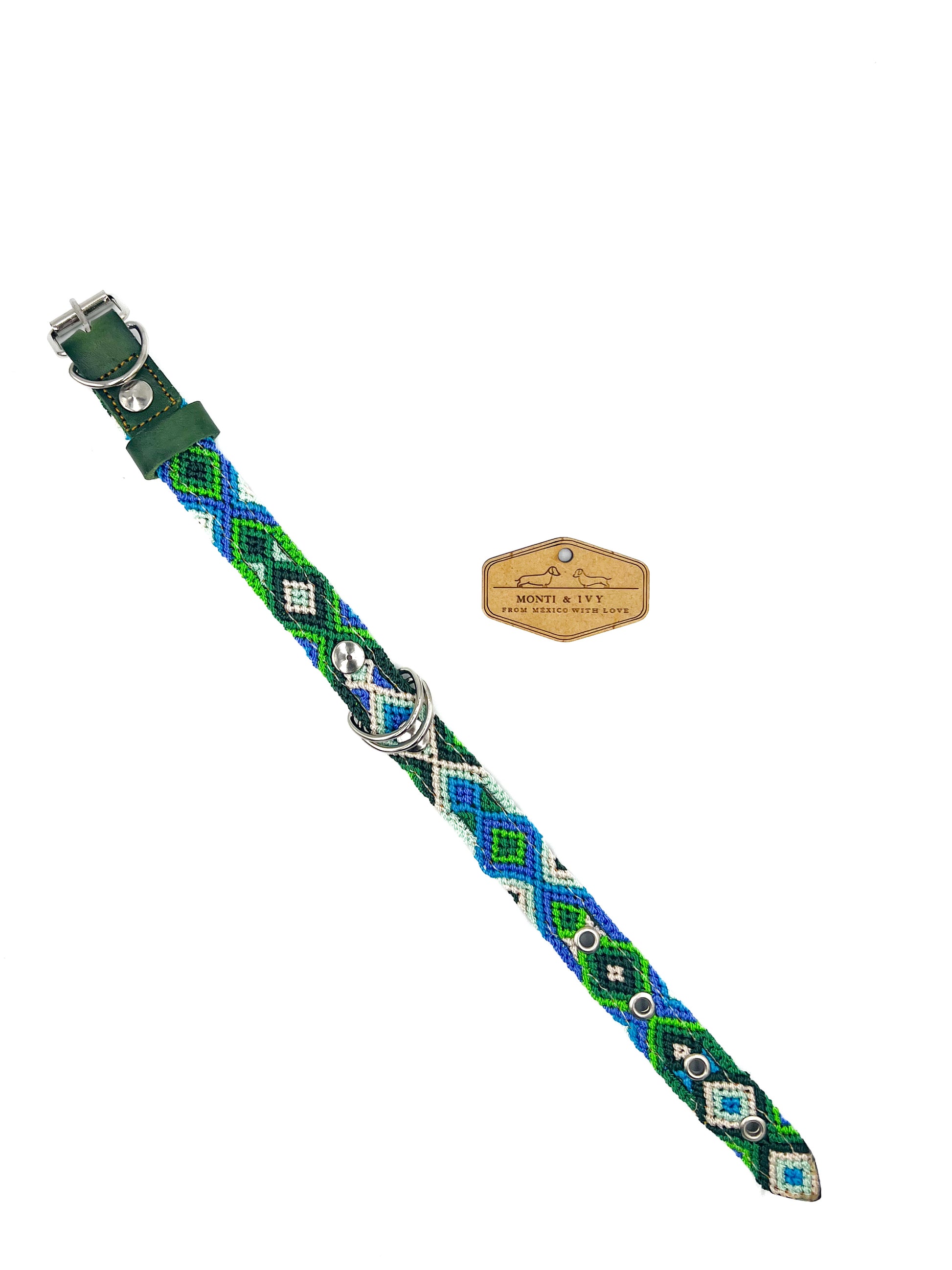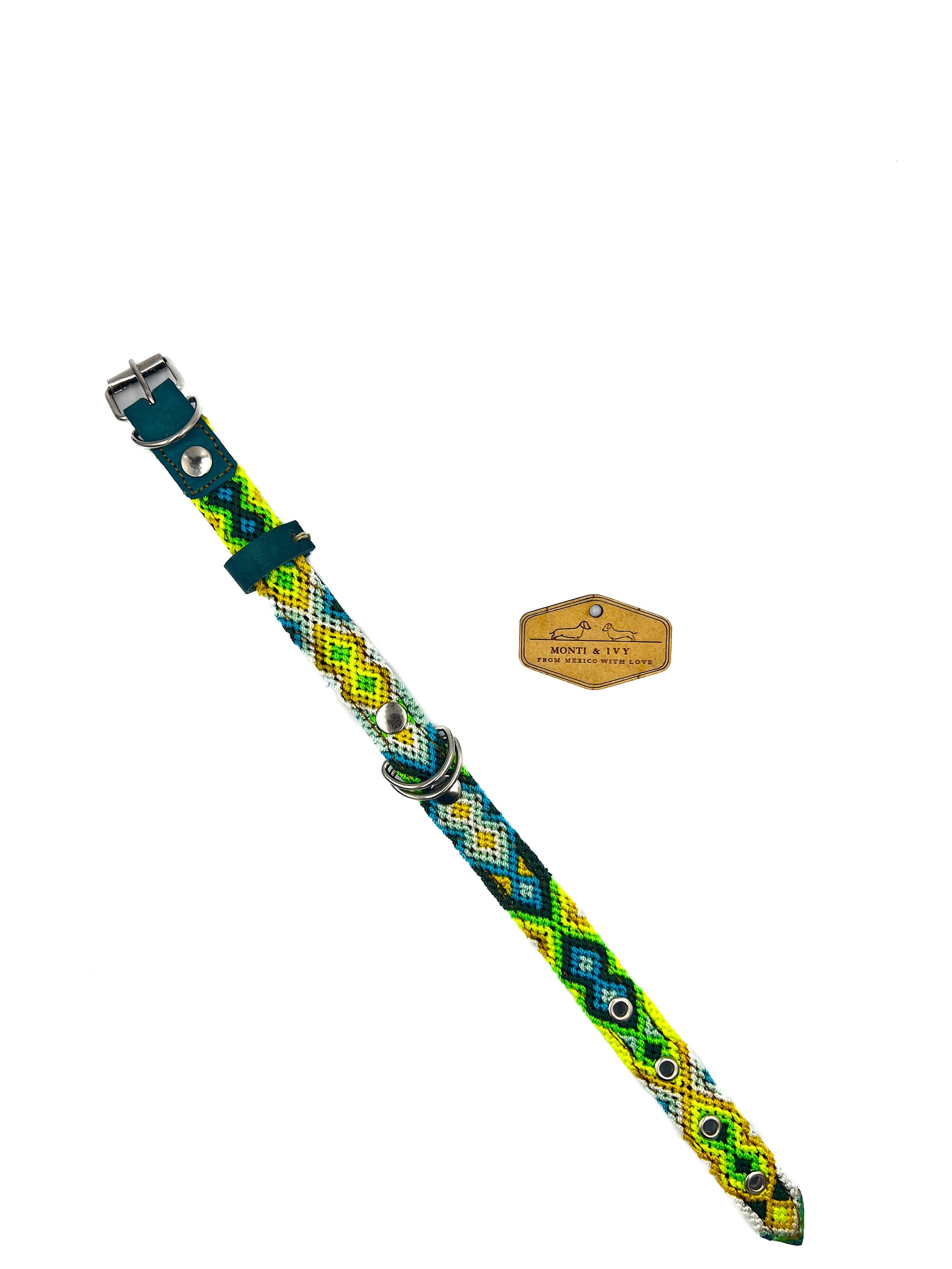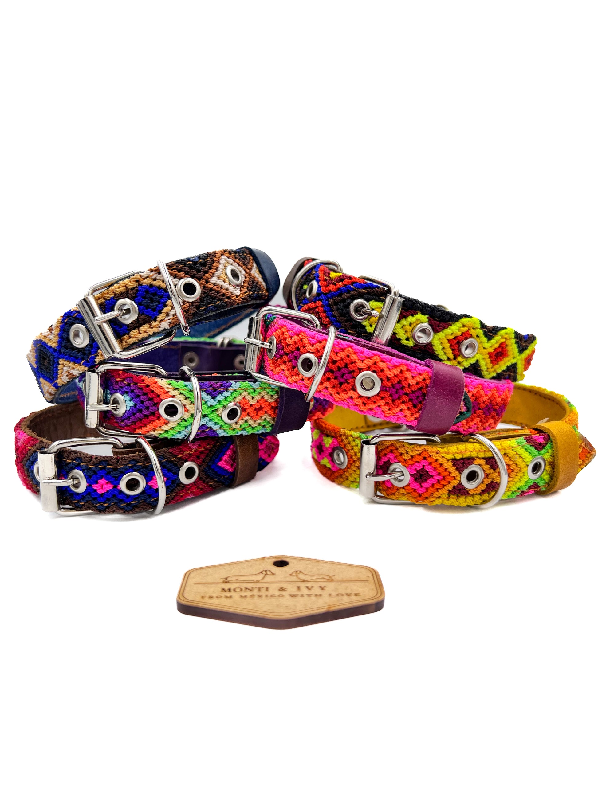 Wenn du ein echter Farbenliebhaber bist, wirst du diesen Stil lieben! Dieses Halsband ist wie ein Farbenparadies! Es fällt auf, egal wohin du gehst. Dieses Halsband ist mit einer Lederbasis verstärkt und darauf ist ein volles Wellenmuster gestickt, das von erstaunlichen mexikanischen Handwerkern hergestellt wurde. Jedes einzelne Design existiert nur einmal, ein zweites Mal findet man es nicht.