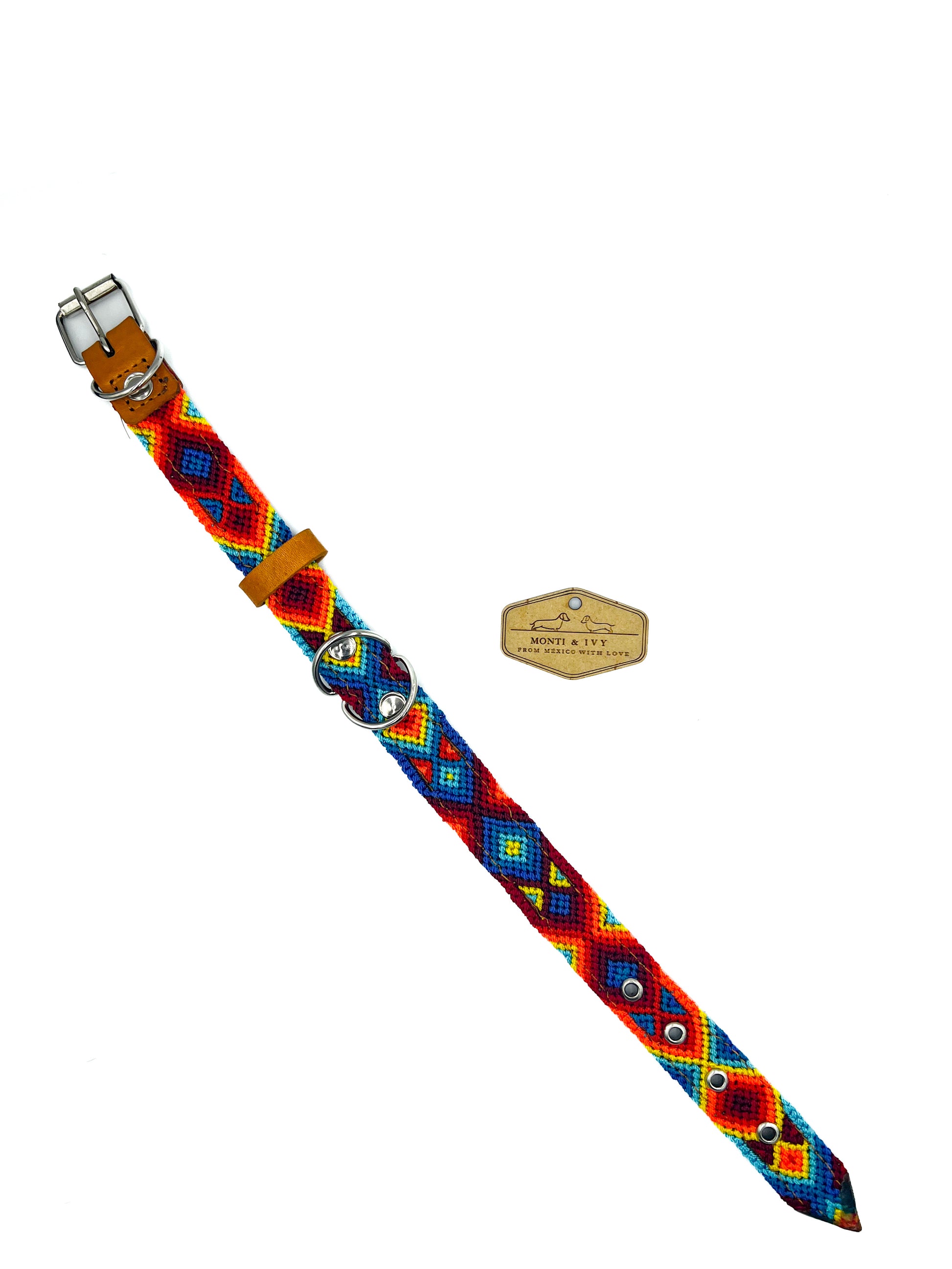 Wenn du ein echter Farbenliebhaber bist, wirst du diesen Stil lieben! Dieses Halsband ist wie ein Farbenparadies! Es fällt auf, egal wohin du gehst. Dieses Halsband ist mit einer Lederbasis verstärkt und darauf ist ein volles Wellenmuster gestickt, das von erstaunlichen mexikanischen Handwerkern hergestellt wurde. Jedes einzelne Design existiert nur einmal, ein zweites Mal findet man es nicht.