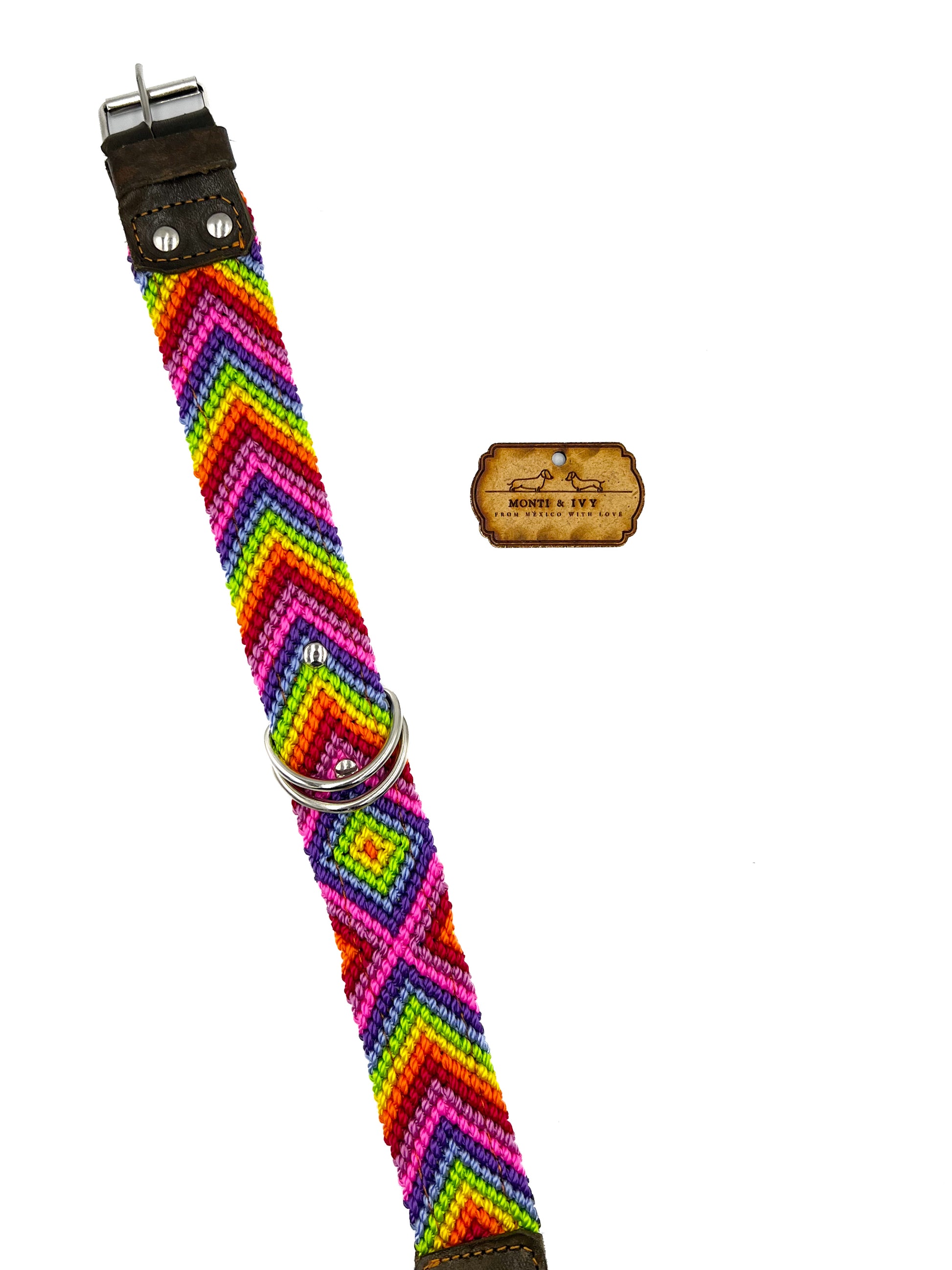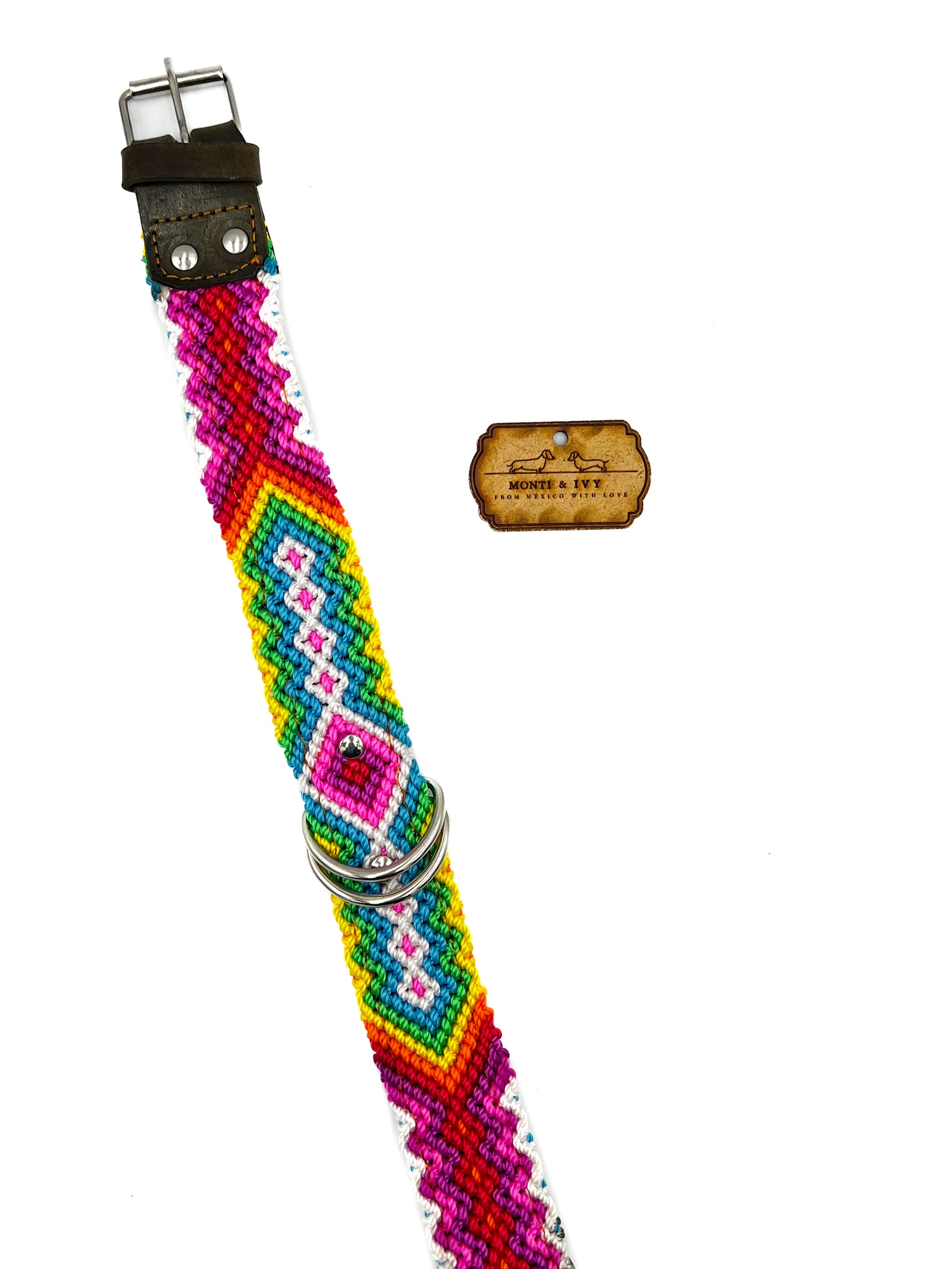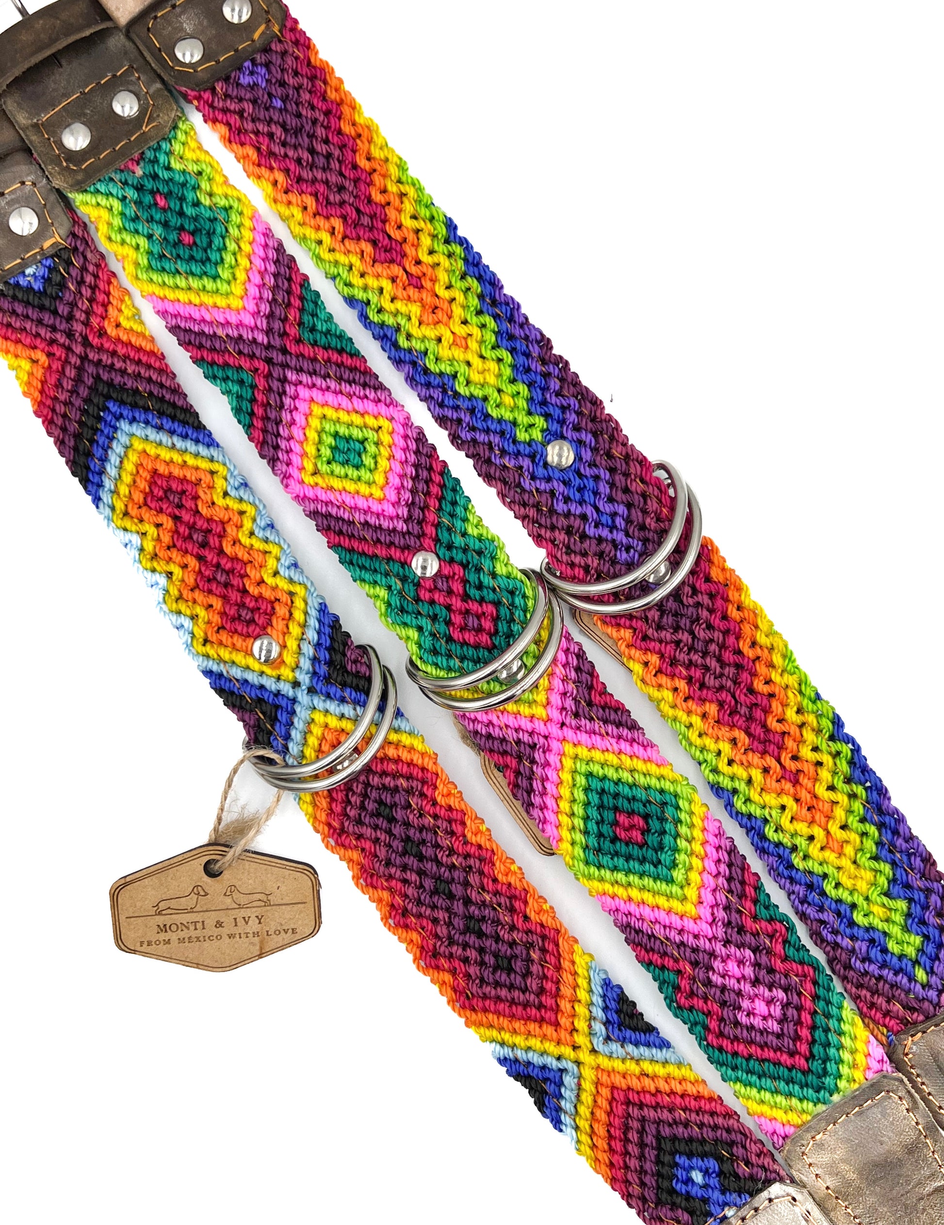 Dieses Halsband ist die perfekte Kombination zwischen unserer Halsband-Oase und unserem Paradies. Sie werden schöne gewebte Farbmuster finden, die mit Leder verstärkt sind. Das Leder am Boden und an der Vorderseite sorgt für Struktur und Festigkeit. Das volle Wellenmuster wird von erstaunlichen mexikanischen Handwerkern hergestellt. Jedes einzelne Design existiert nur einmal, ein zweites Mal findet man es nicht.