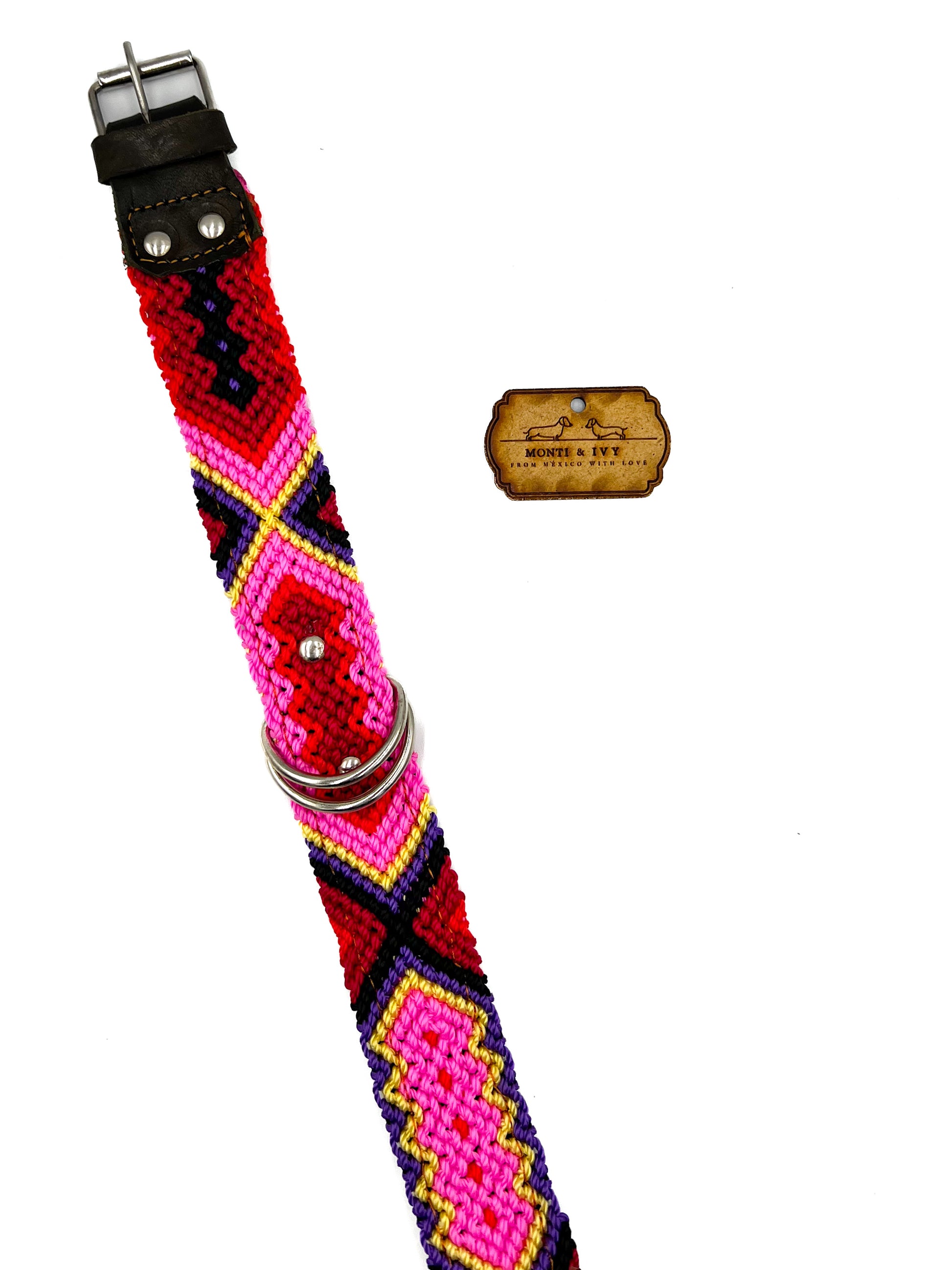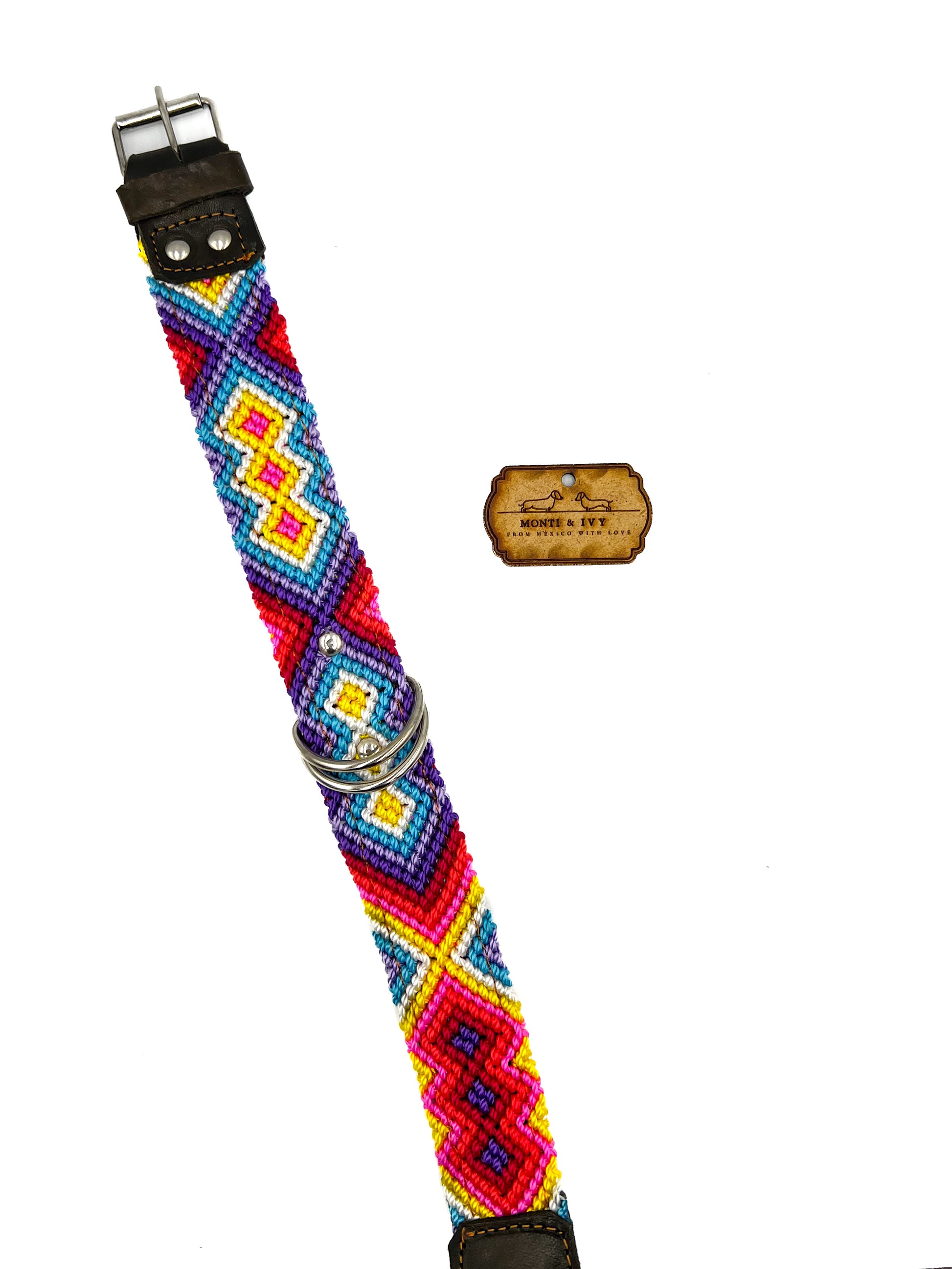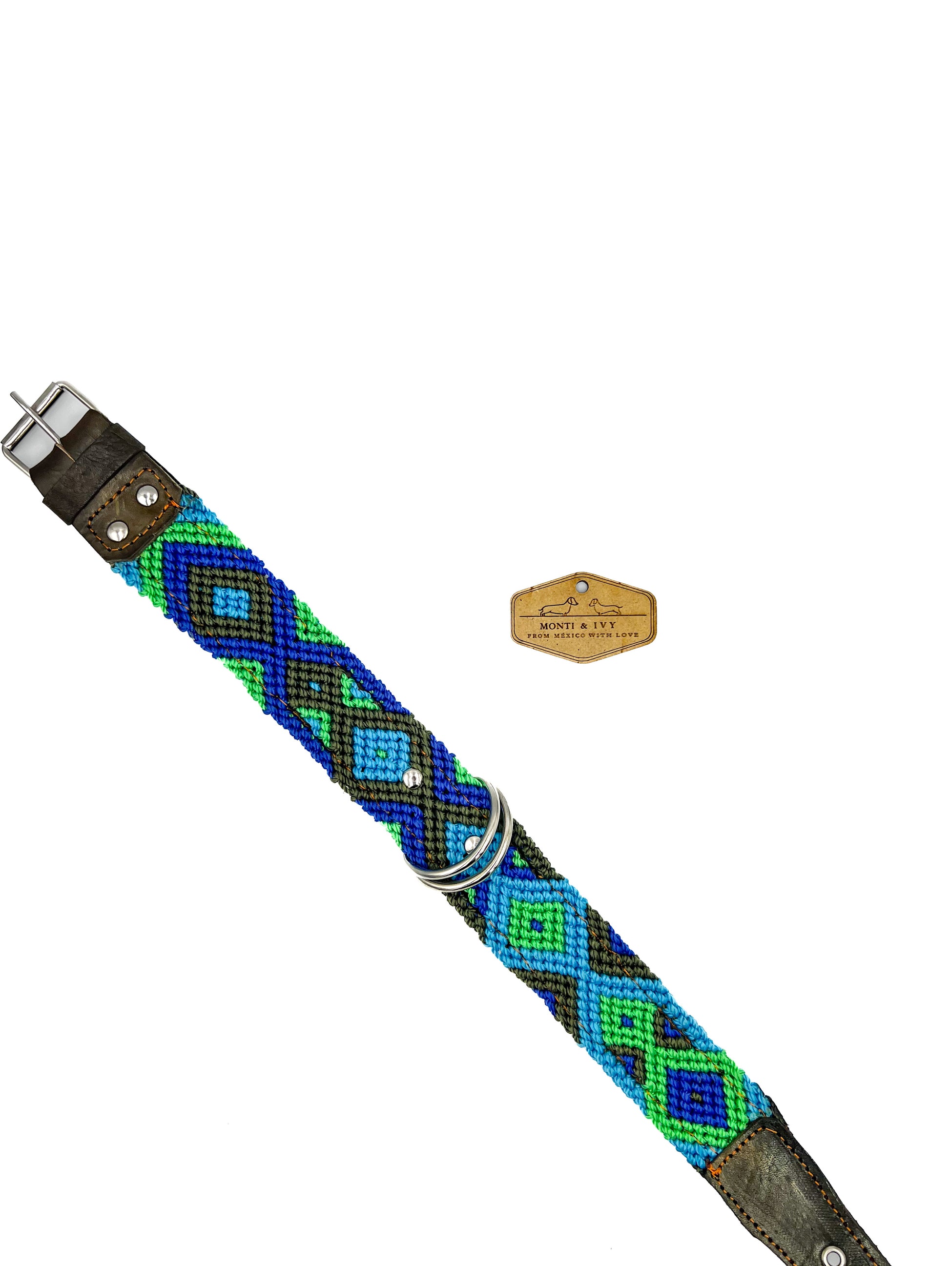 Dieses Halsband ist die perfekte Kombination zwischen unserer Halsband-Oase und unserem Paradies. Sie werden schöne gewebte Farbmuster finden, die mit Leder verstärkt sind. Das Leder am Boden und an der Vorderseite sorgt für Struktur und Festigkeit. Das volle Wellenmuster wird von erstaunlichen mexikanischen Handwerkern hergestellt. Jedes einzelne Design existiert nur einmal, ein zweites Mal findet man es nicht.