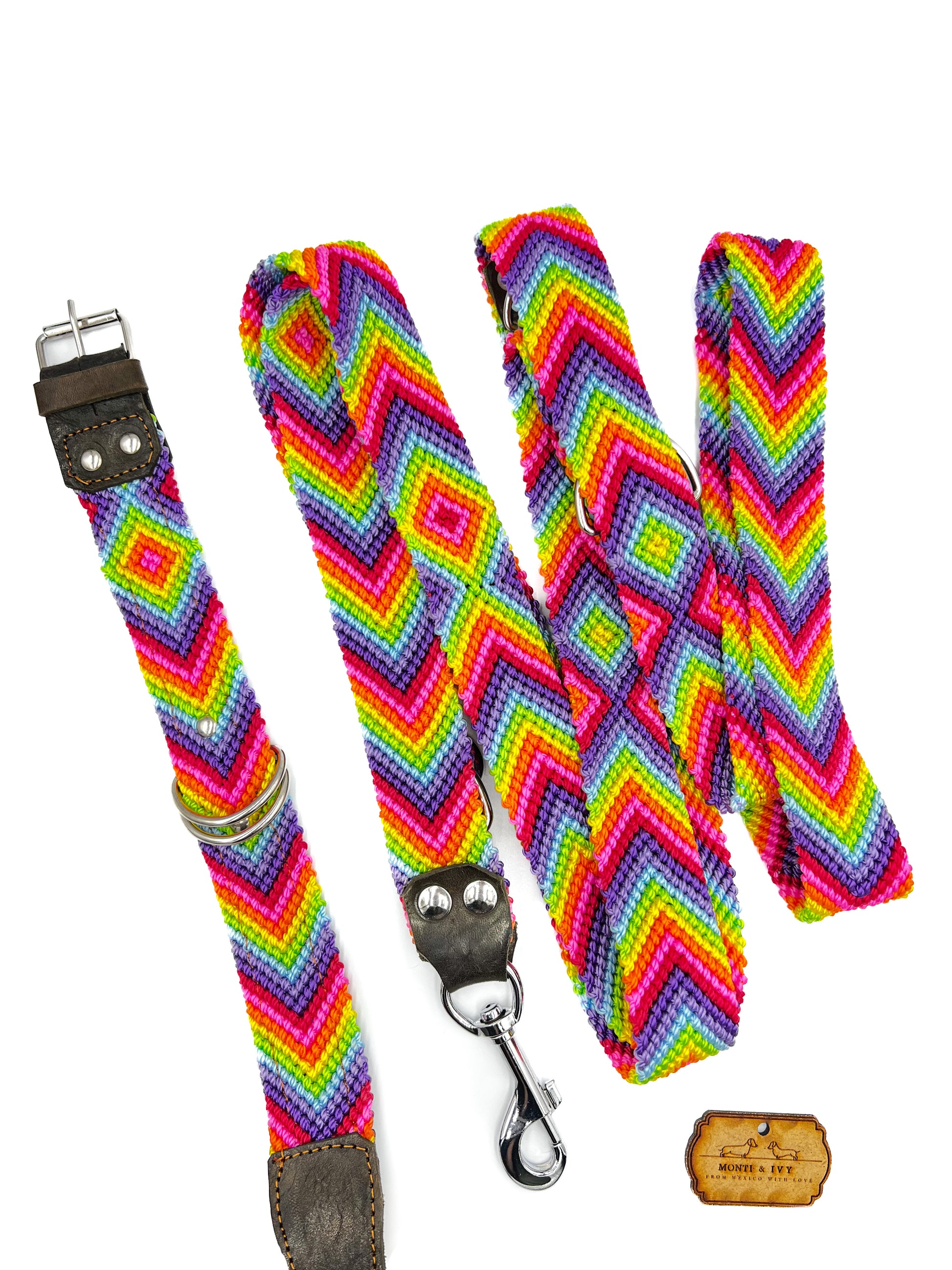 Für unsere HORIZON-Sets entwerfen und produzieren die Künstler das gleiche Muster für die Leine und das Halsband, so dass diese perfekt zusammen passen! Das Halsband ist unser neues Design PRISMA, welches bisher nur in den RAINBOW-Sets zu erwerben war.