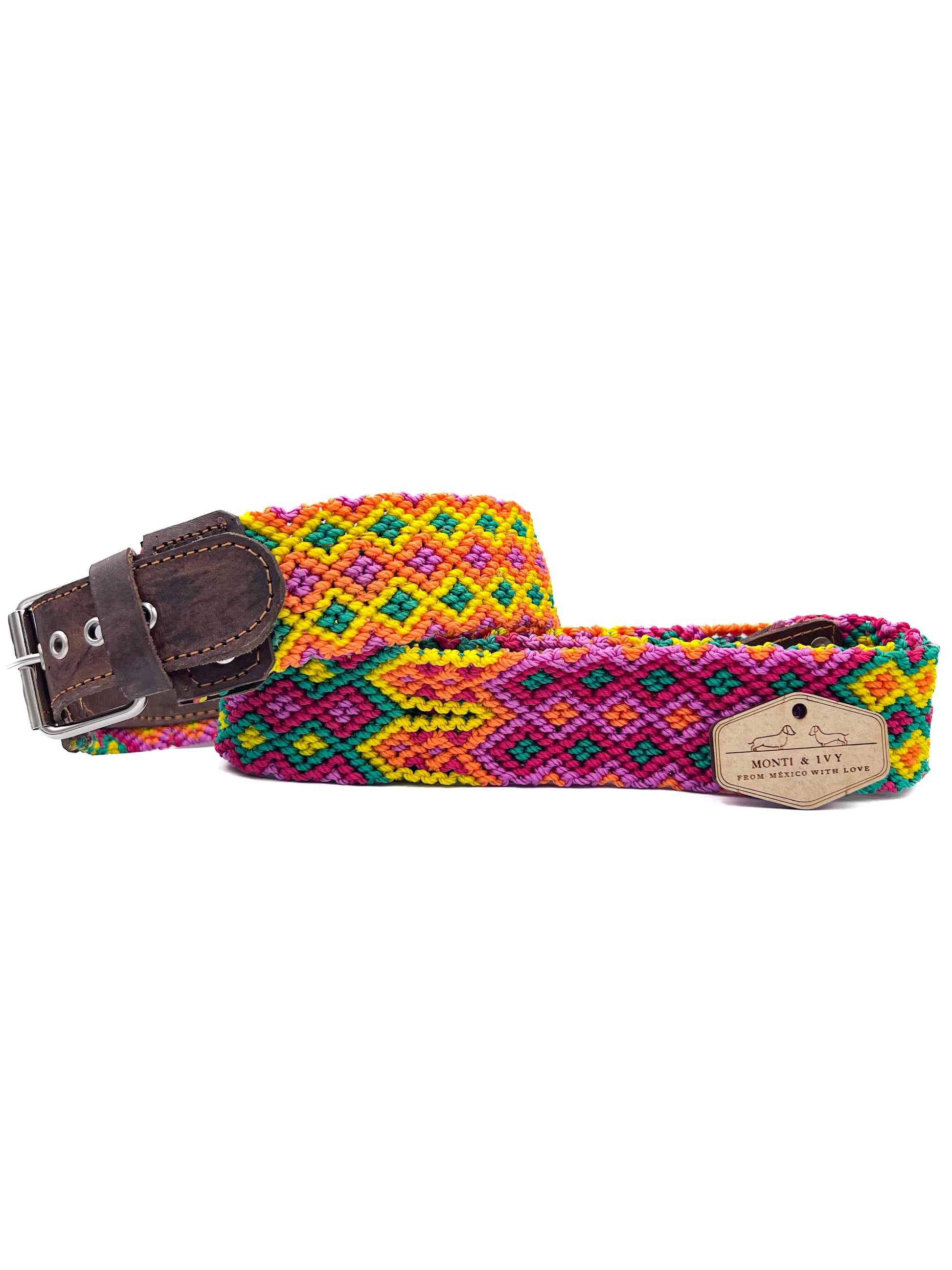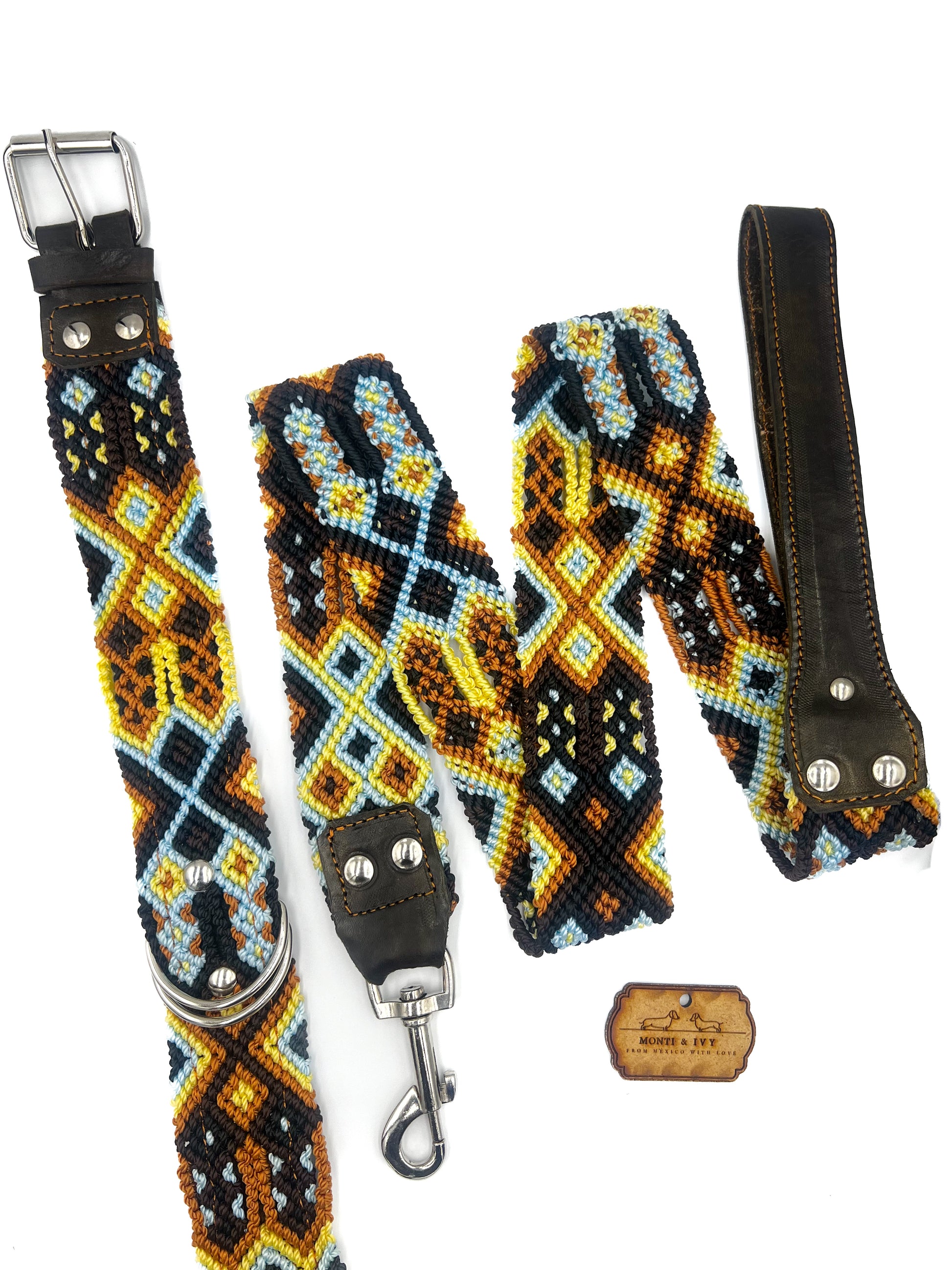 Dieses Set ist etwas ganz Besonderes, weil die Künstler das gleiche Muster für Halsband und Leine entwerfen und produzieren, um diese Kombination zu erhalten. Deshalb passt es perfekt zusammen! Das Design dieses Halsbands ist etwas ganz besonderes. Es ist mit Leder verstärkt.