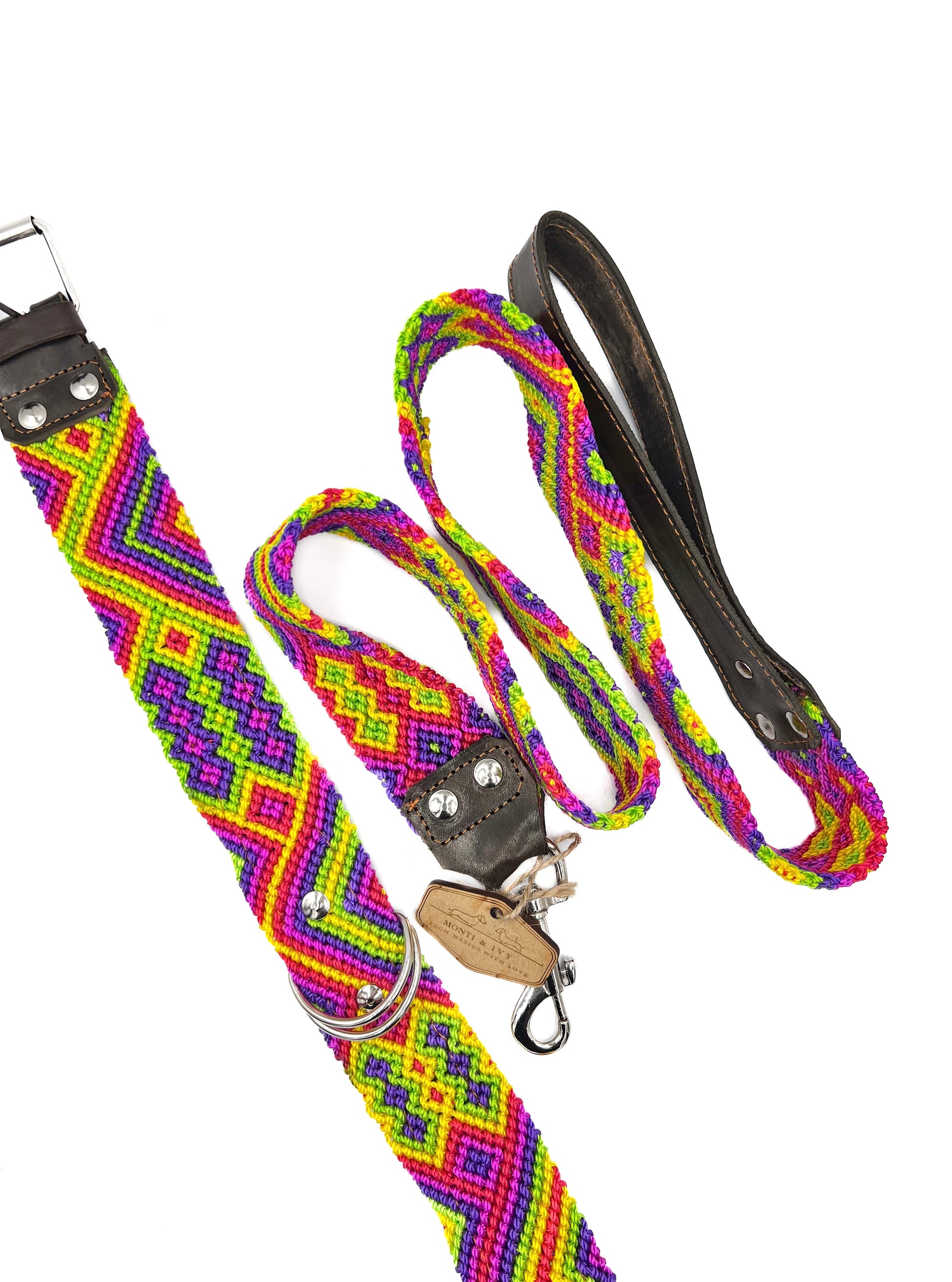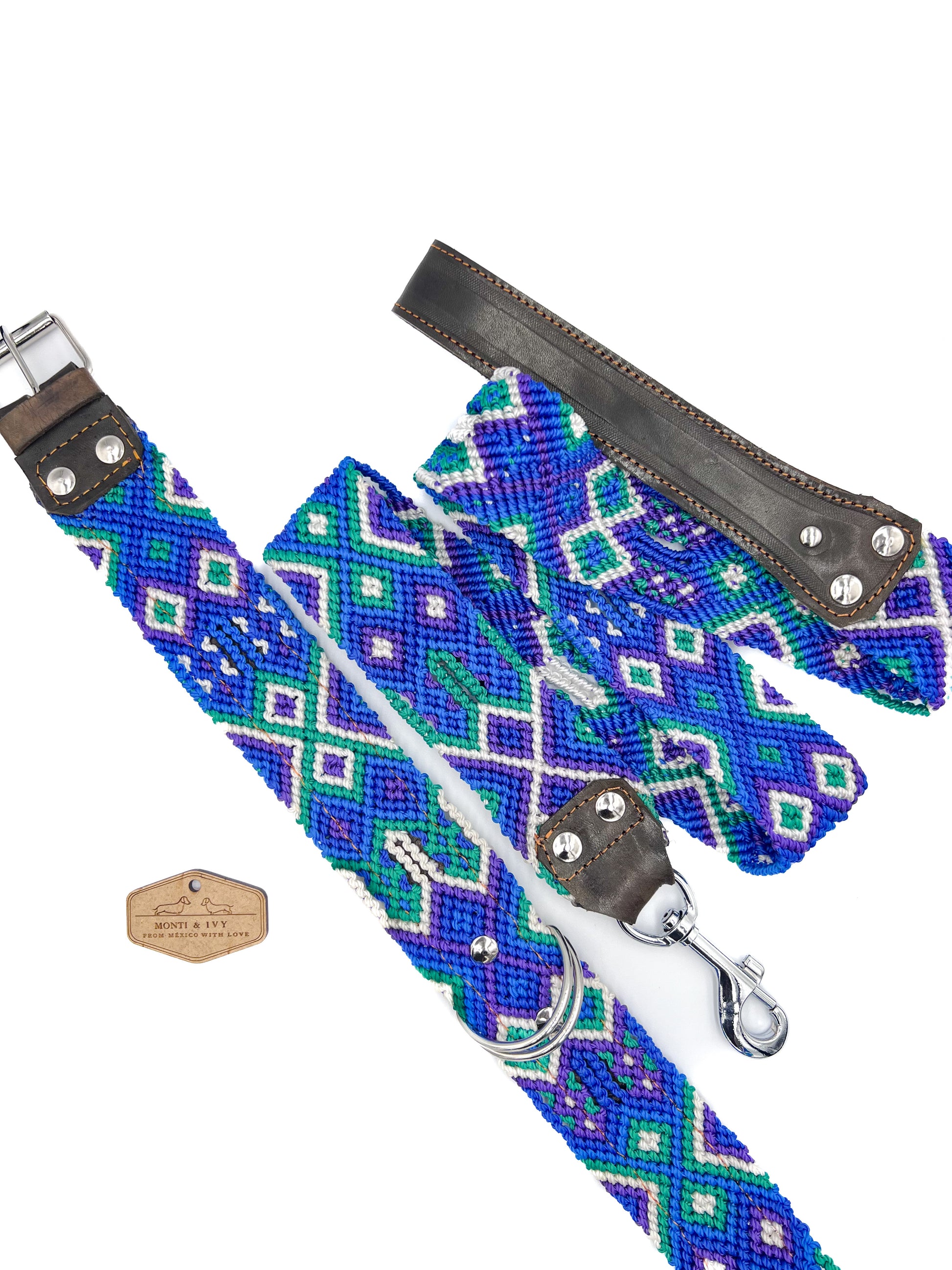 Dieses Set ist etwas ganz Besonderes, weil die Künstler das gleiche Muster für Halsband und Leine entwerfen und produzieren, um diese Kombination zu erhalten. Deshalb passt es perfekt zusammen! Das Design dieses Halsbands ist etwas ganz besonderes. Es ist mit Leder verstärkt.