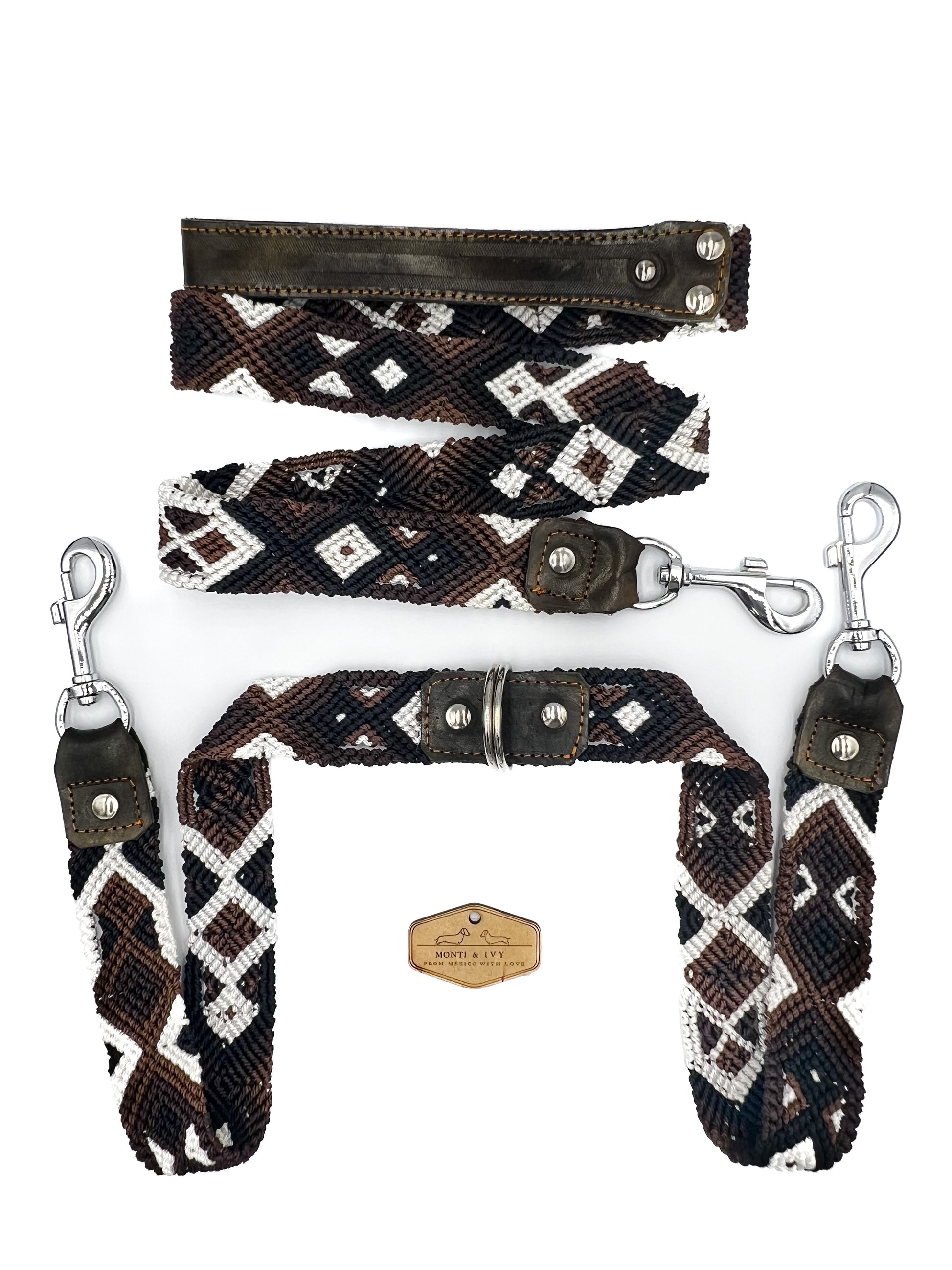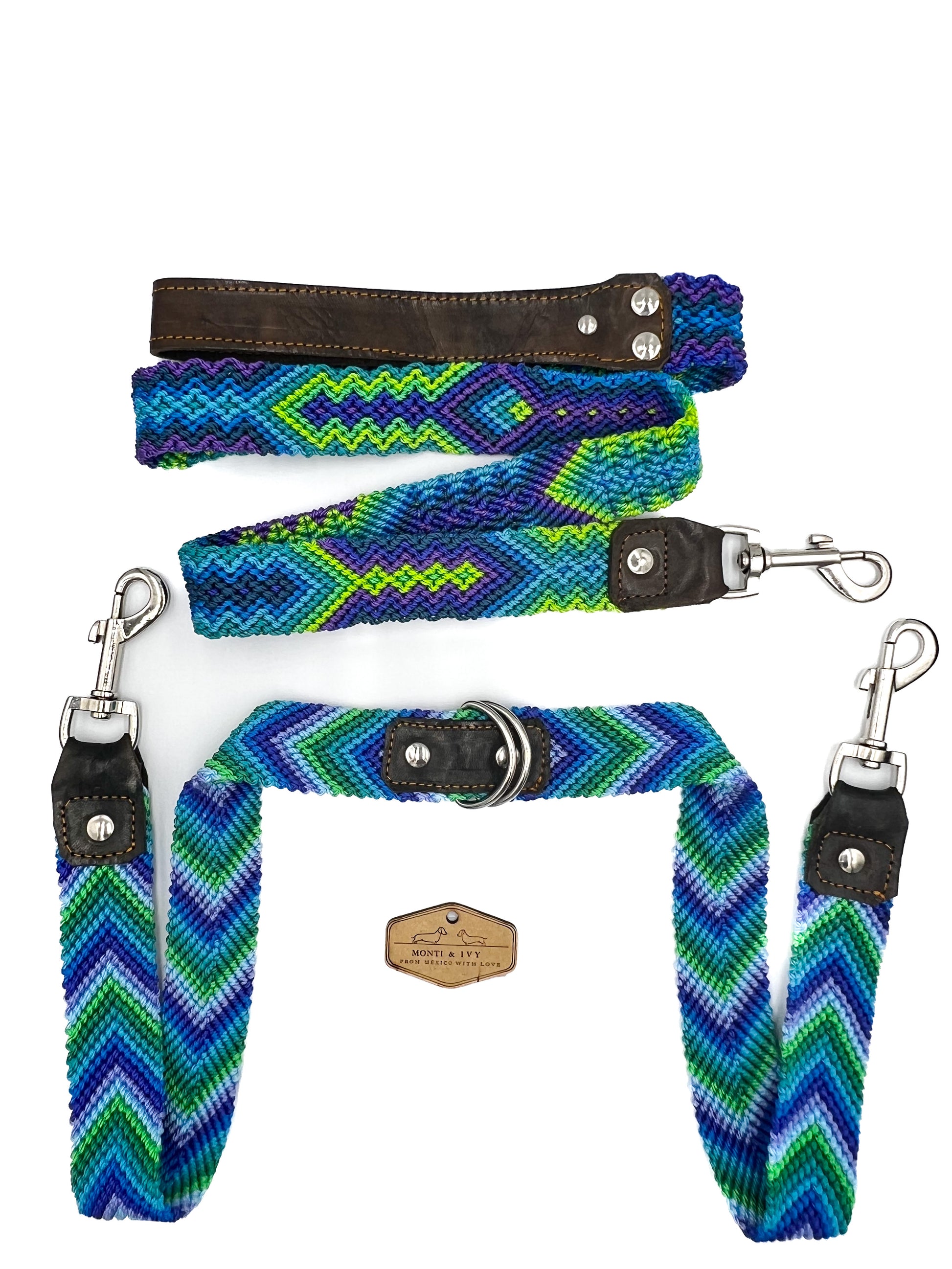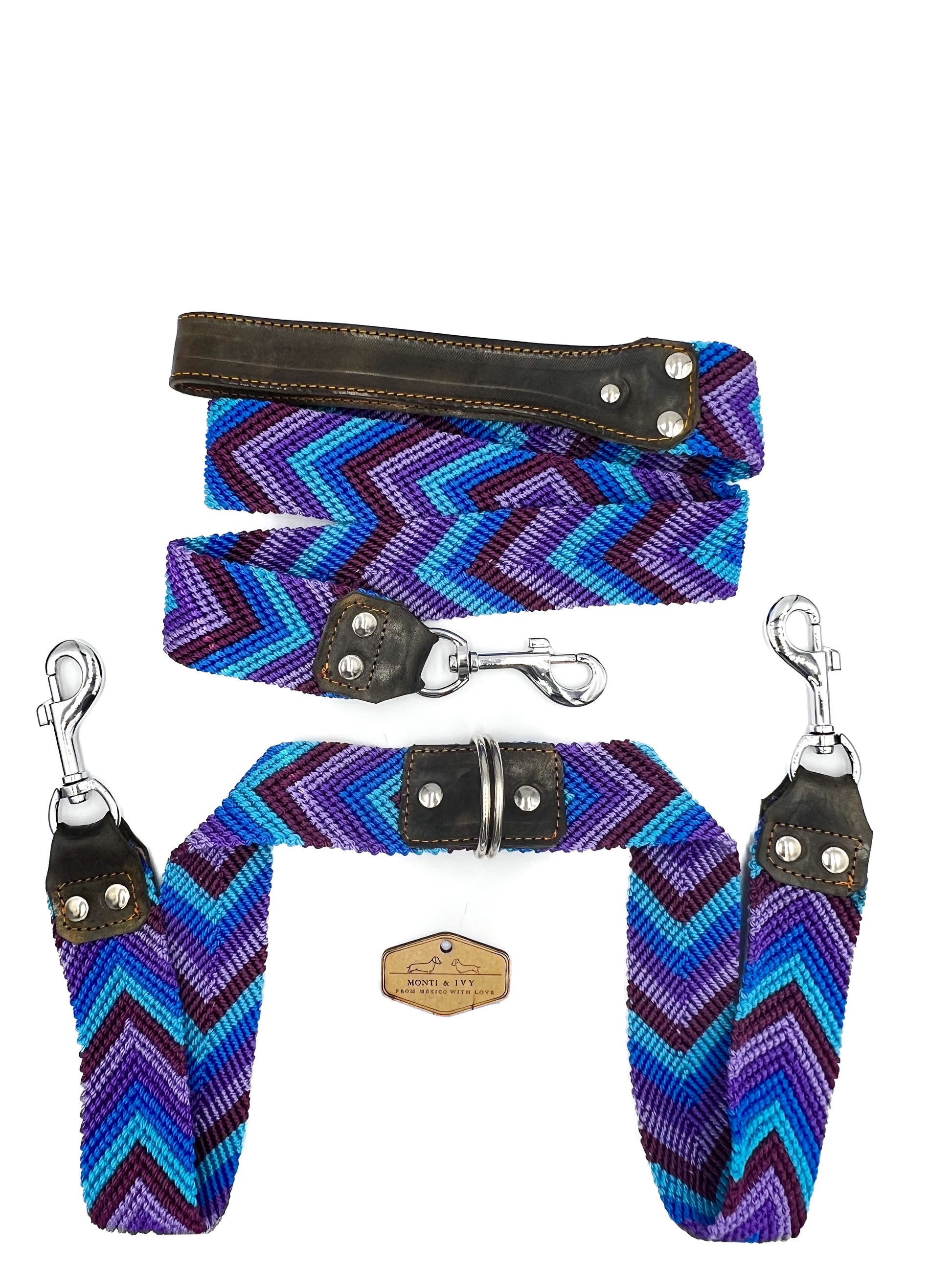 Handgefertigte Leine mit Verlängerung für 2 Hunde und Ledergriff